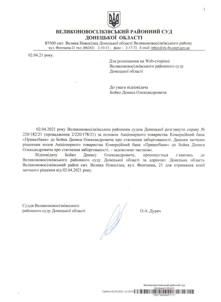 оголошення для Бойка Д. О.