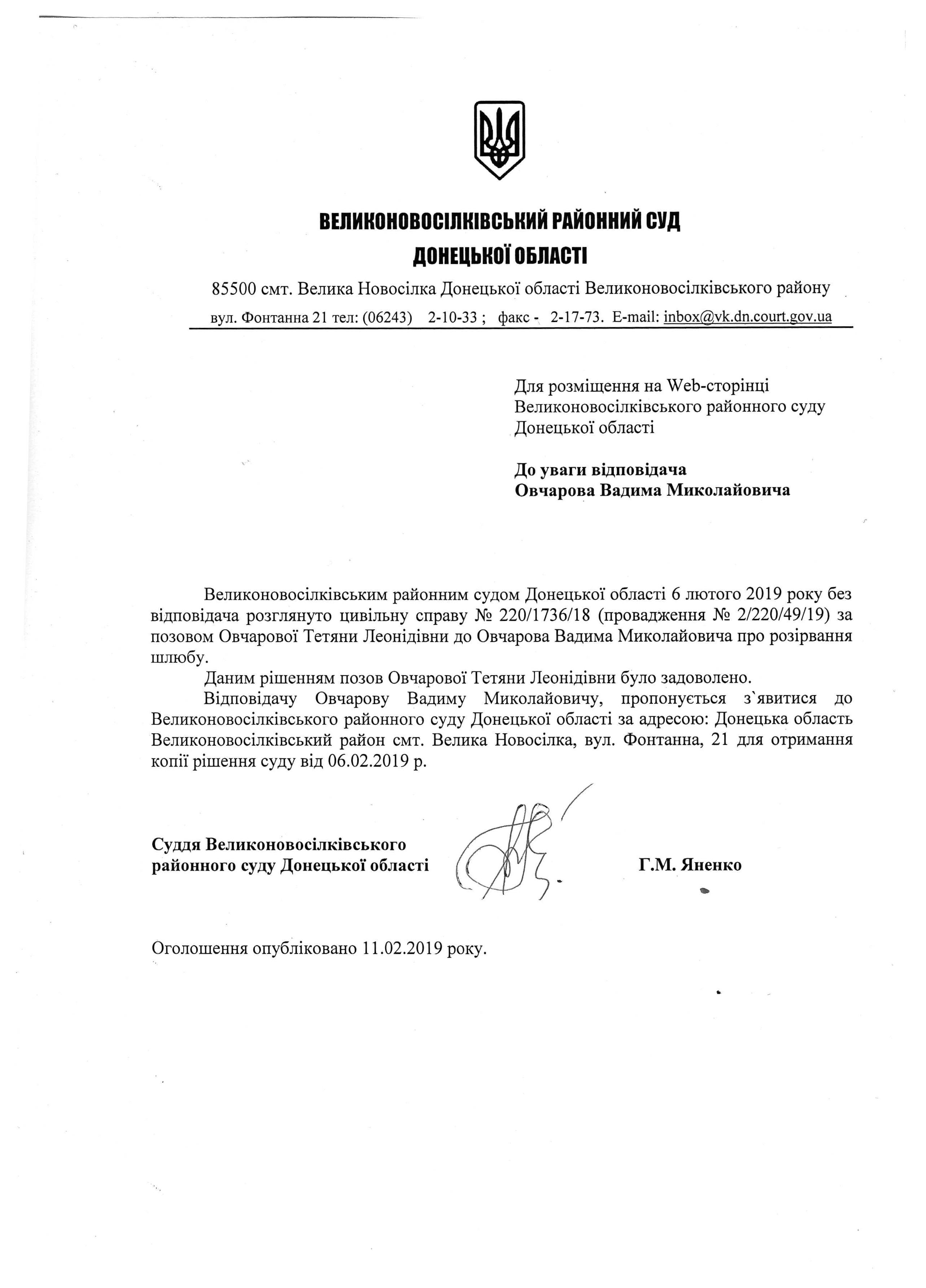 До уваги Овчаров В.М.