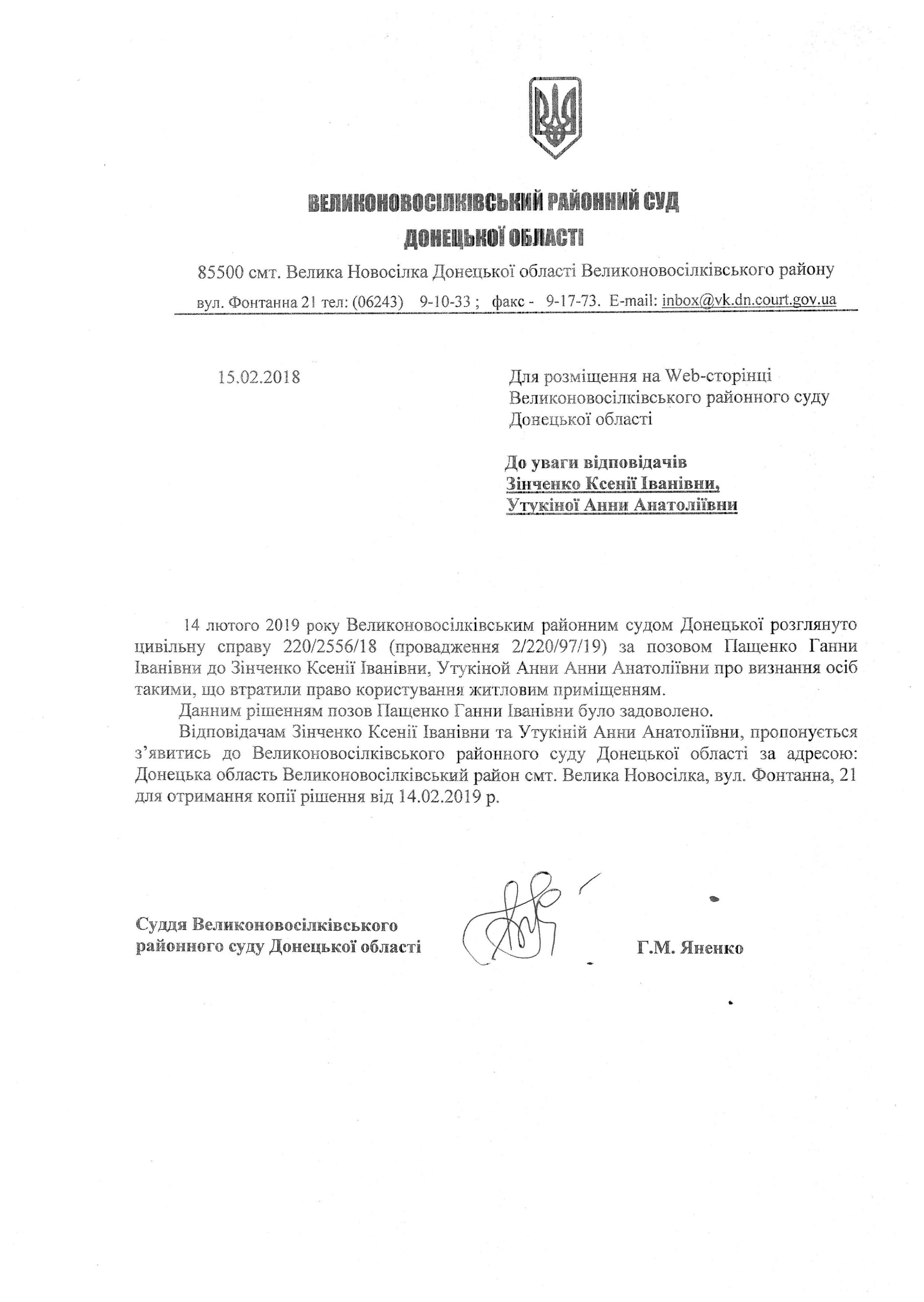 До уваги Зінченко К.І., Утукіної А.А.