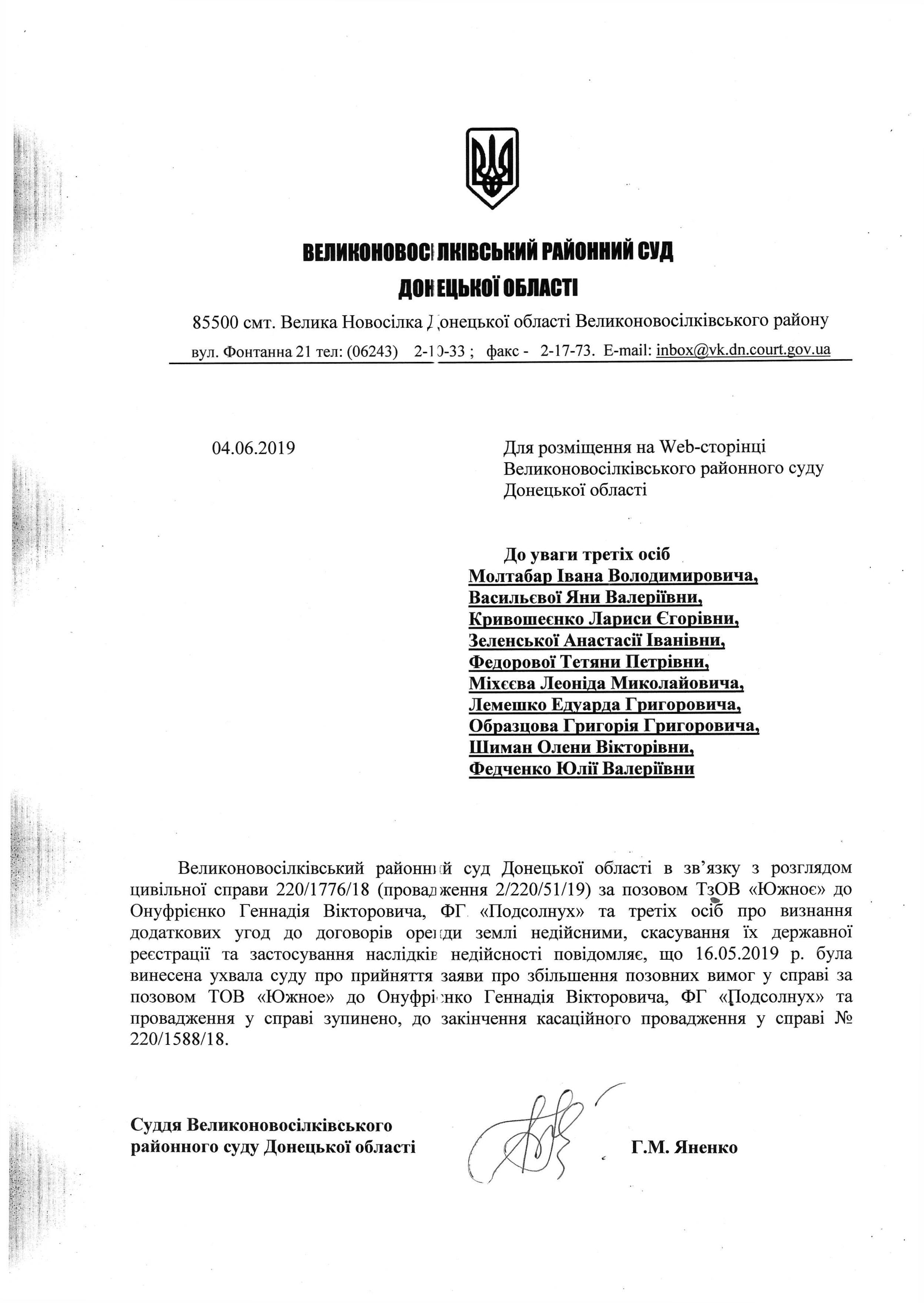 До уваги Молтабар І.В., Васильєвої Я.В., Кривошеєнко Л.Є., Зеленської А.І., Федорової Т.П., Міхєєвої Л.М., Лемешко Е.Г., Образцова Г.Г., Шиман О.В., Федченко Ю.В.