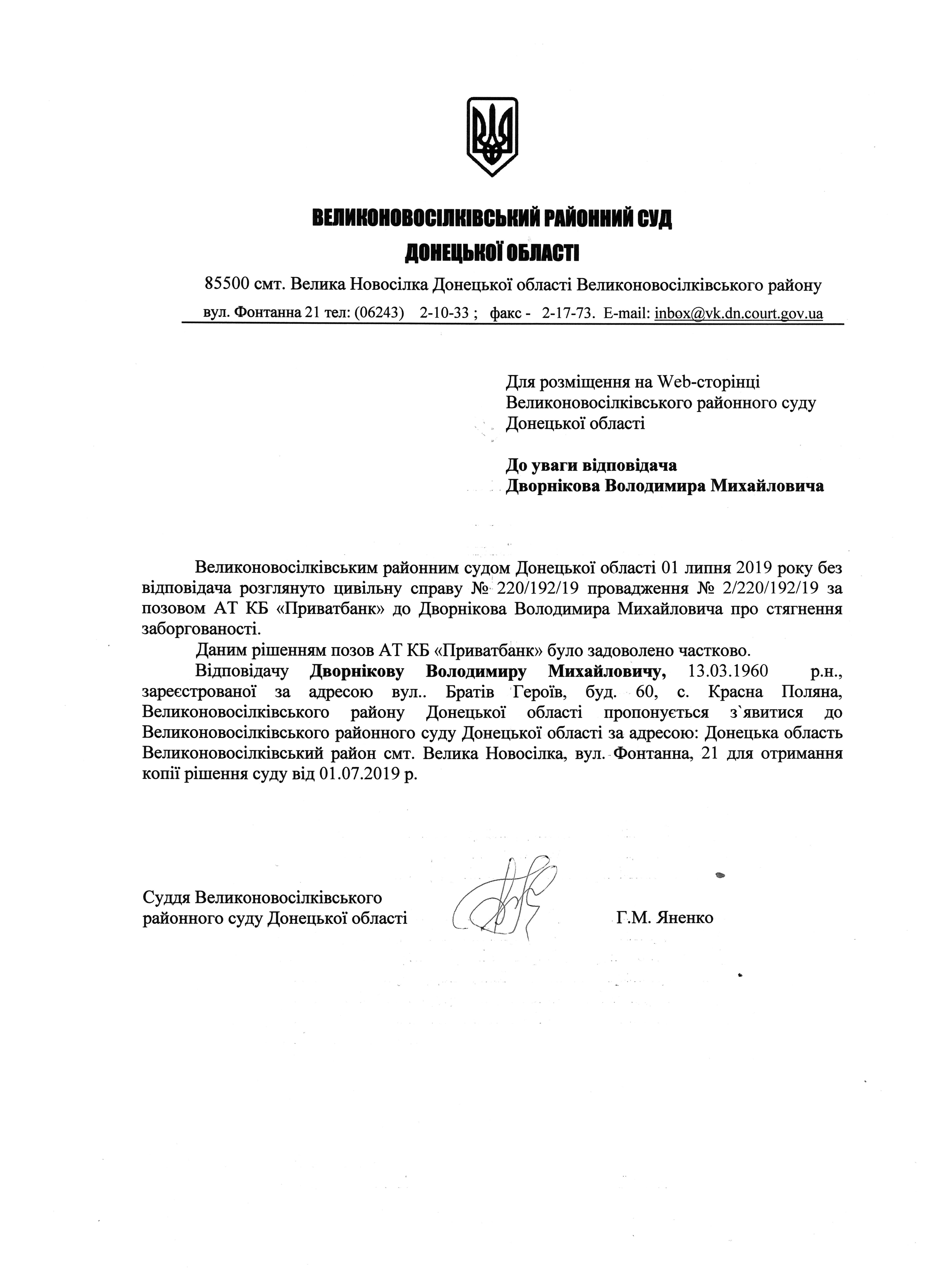 До уваги Дворнікова В.М.