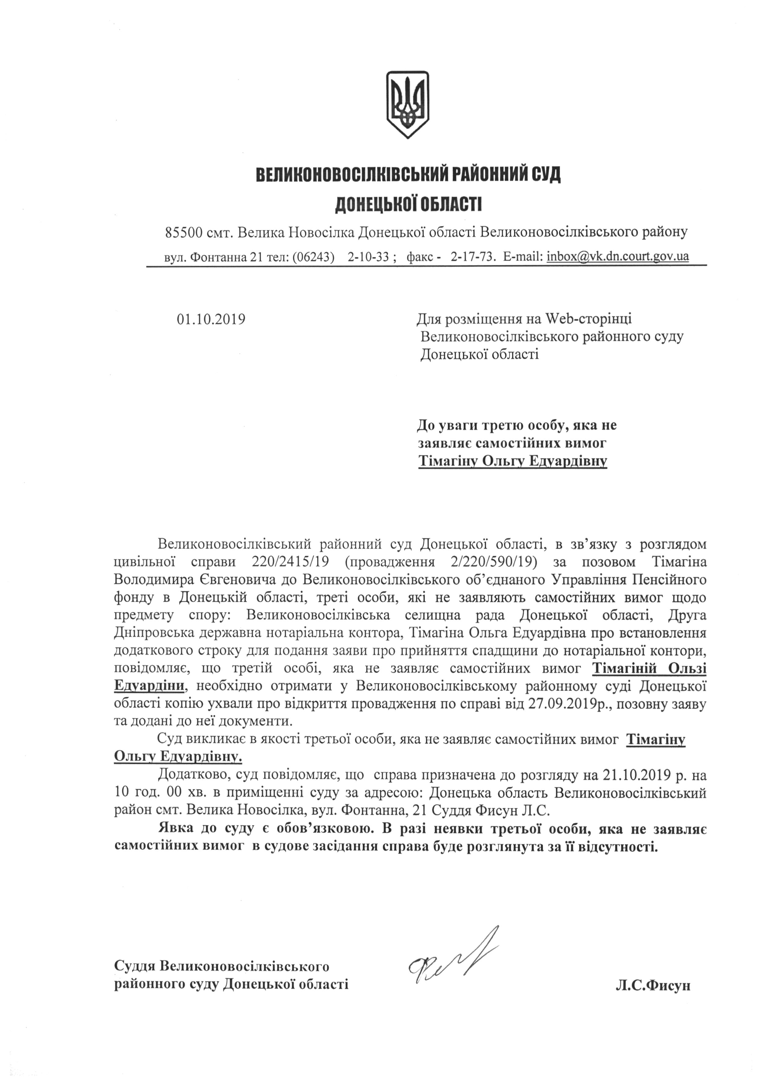 До уваги Тімагіної О.Е.