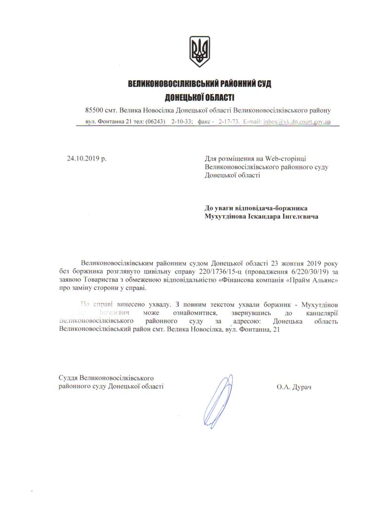 Оголошення для Мухутдінова І.І. щодо ознайомлення з повним текстом ухвали