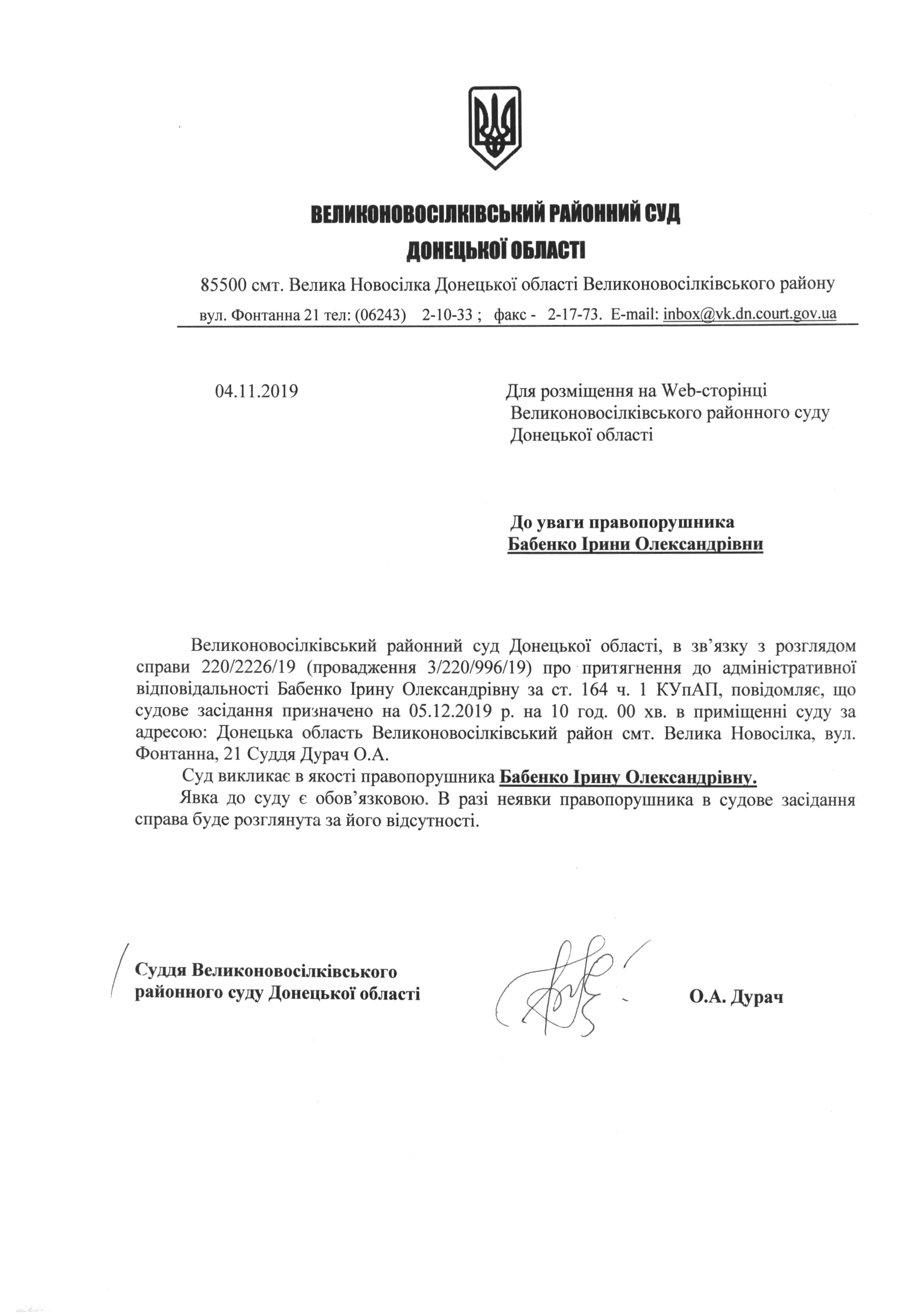 До уваги Бабенко І.О.