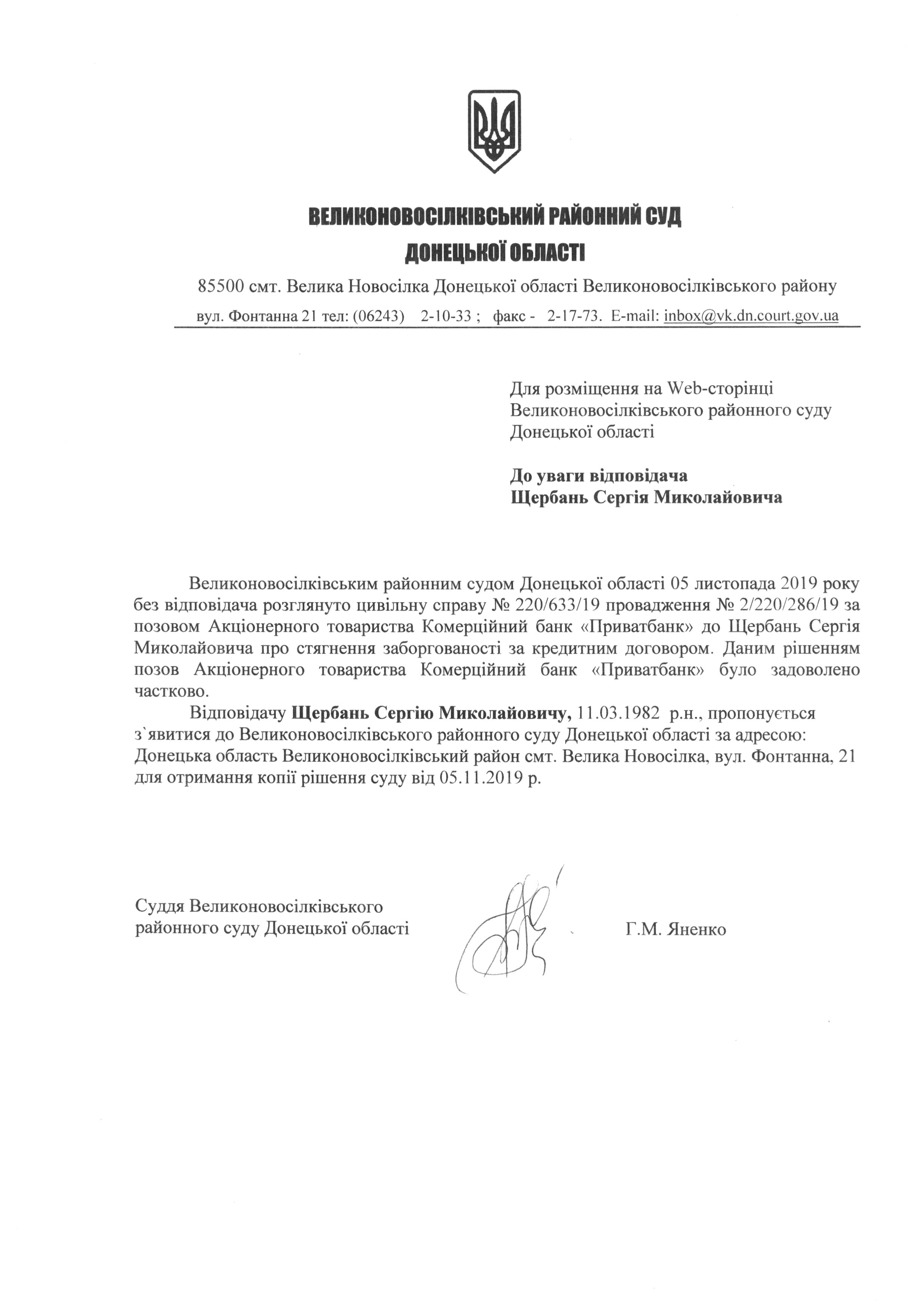До уваги Щербань С.М.