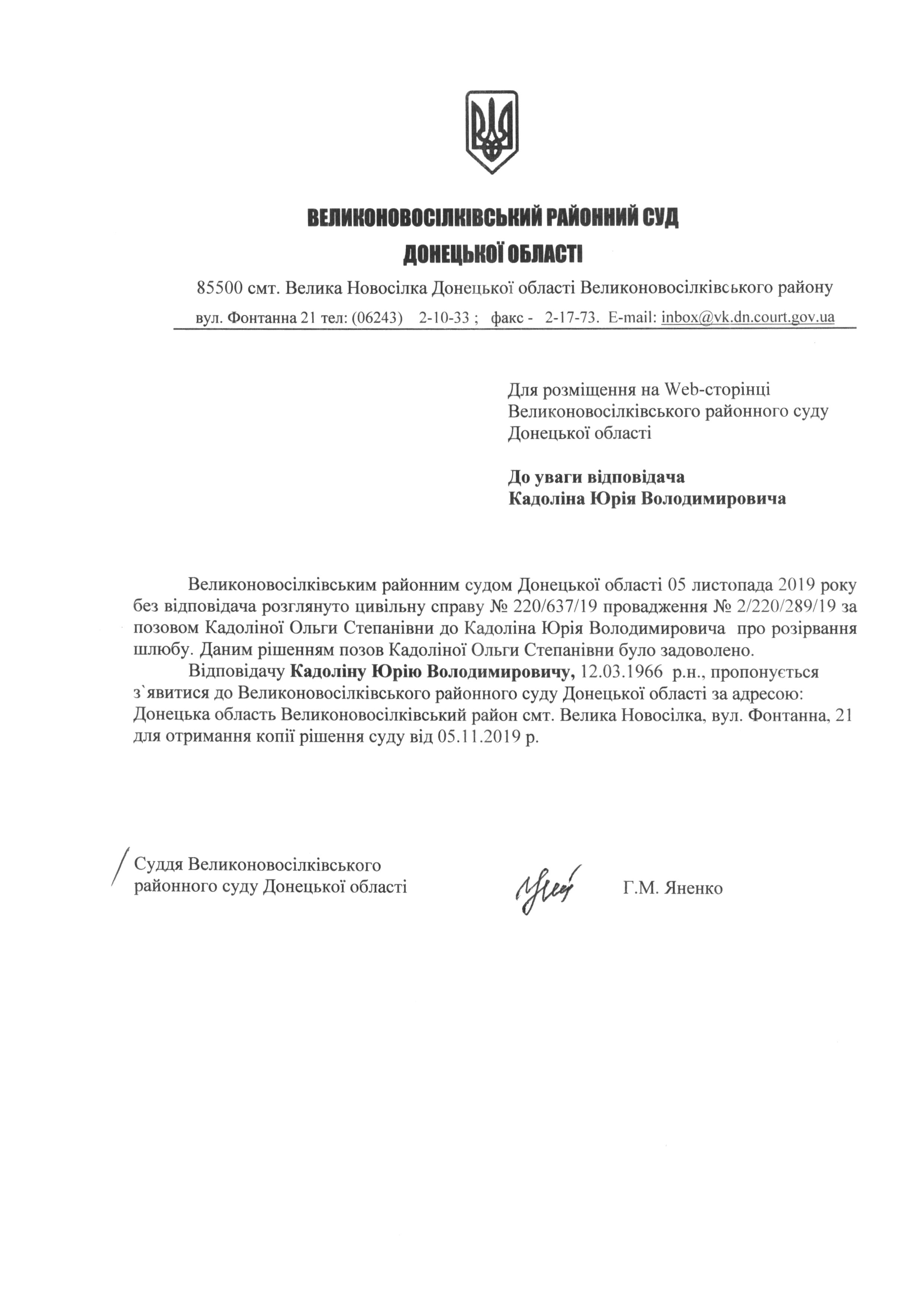 До уваги Кадоліна Ю.В.