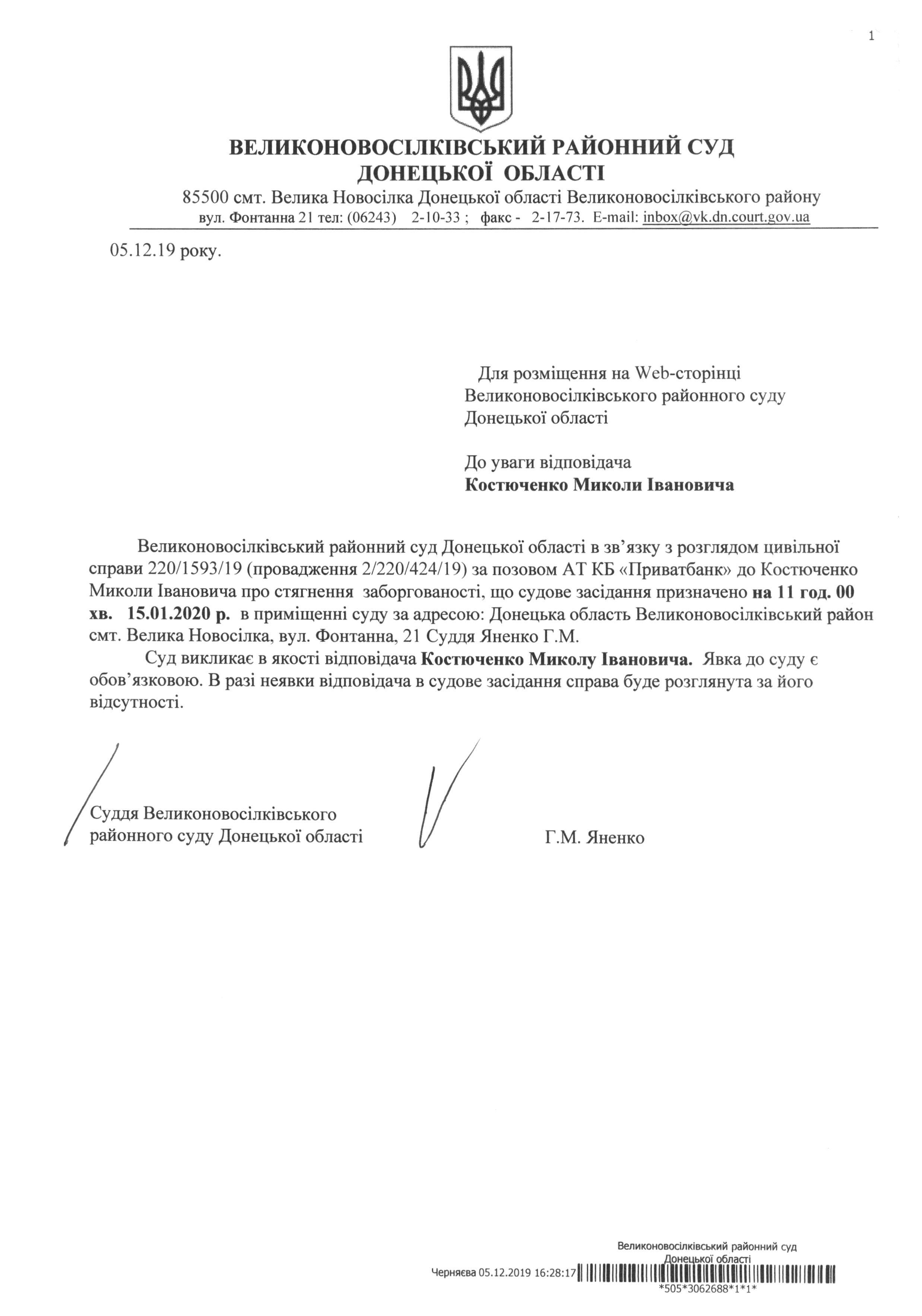 До уваги Костюченко М.І.