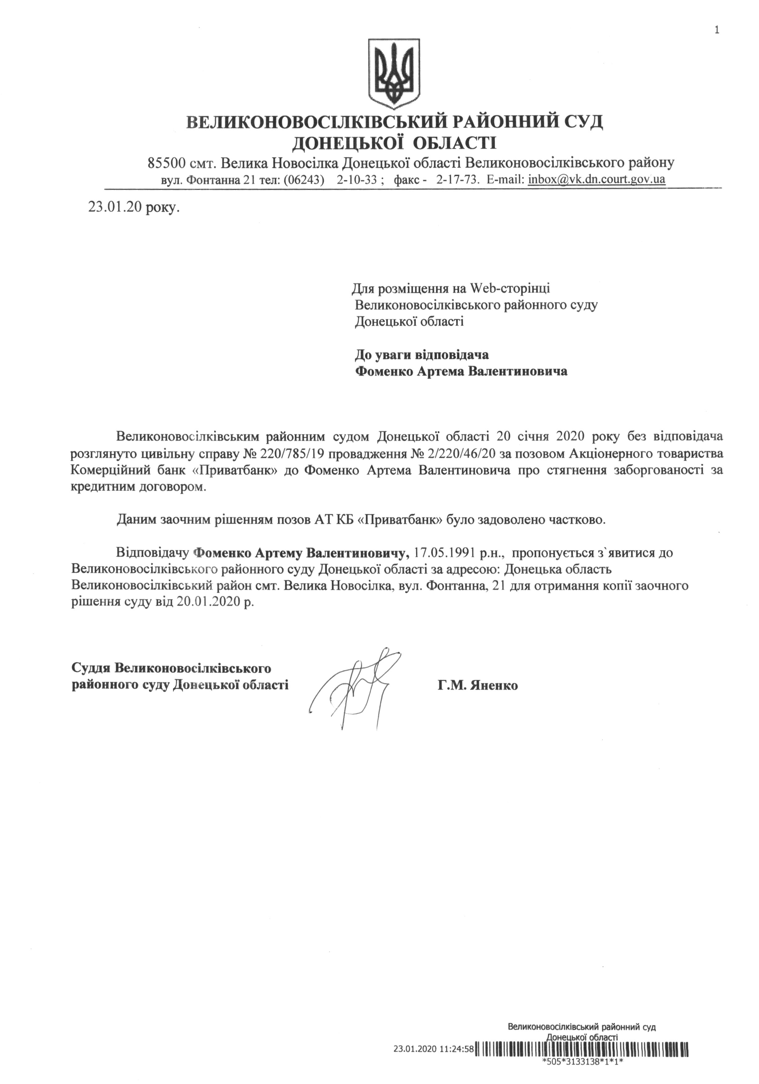 До уваги Фоменко Артема Валентиновича