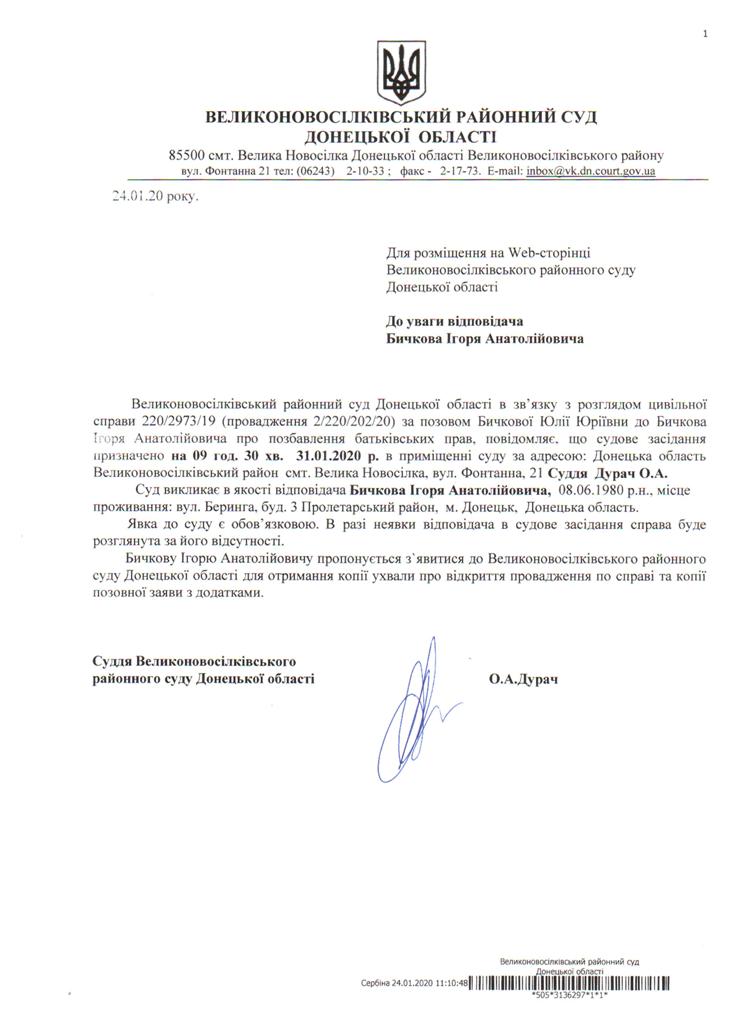 оголошення про виклик до суду