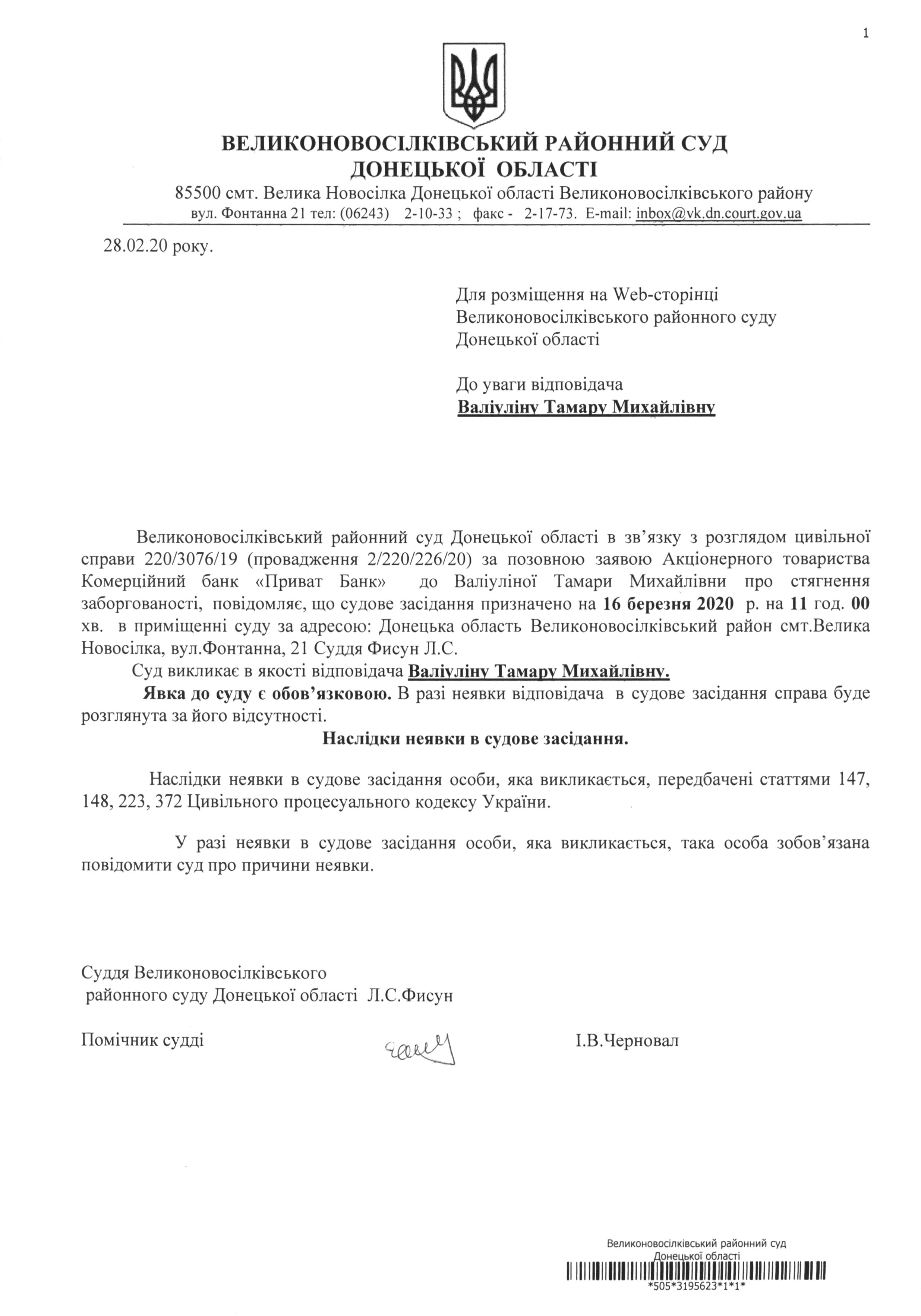 До уваги відповідача Валіуліну Тамару Михайлівну