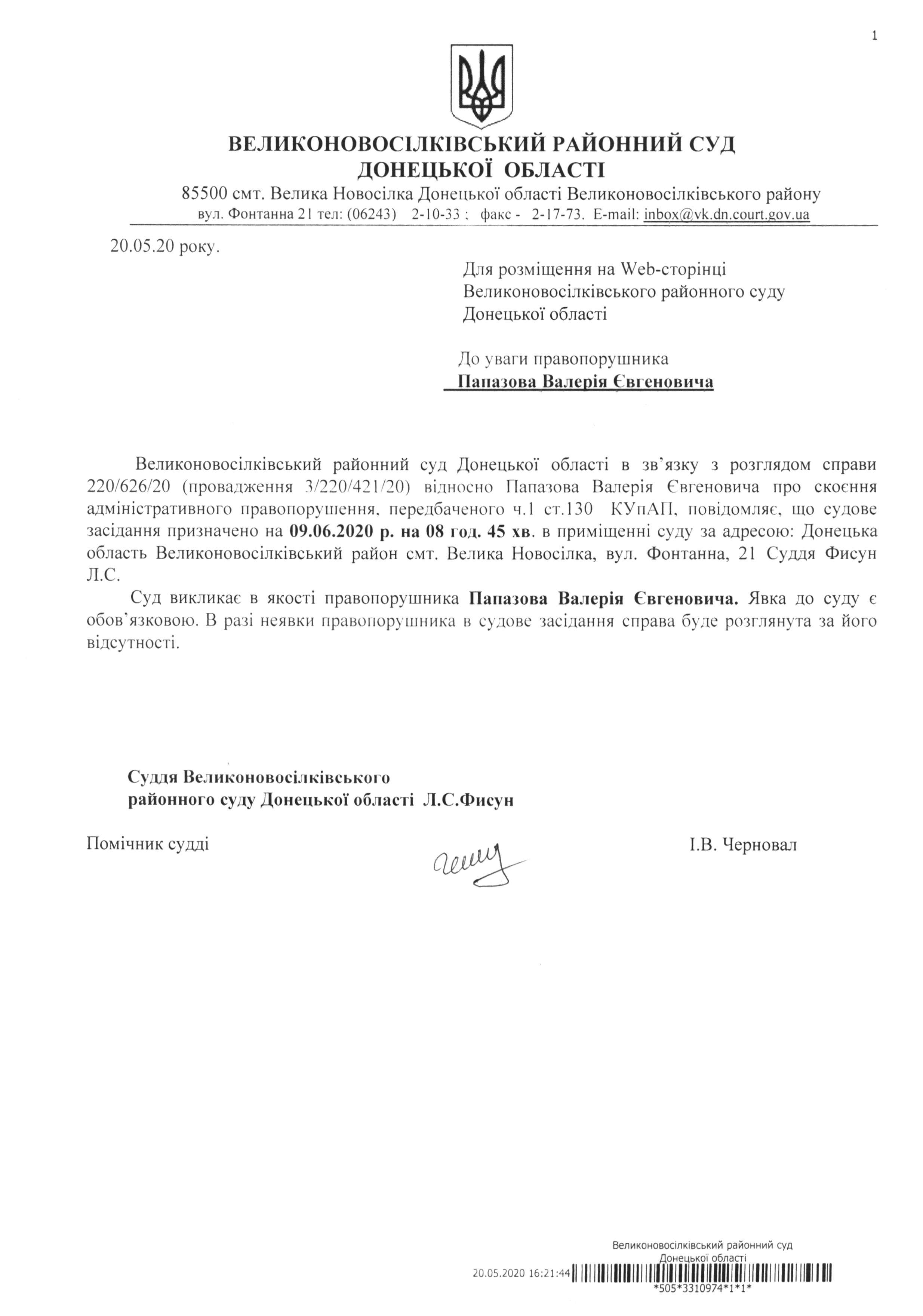 До уваги правопорушника Папазова Валерія Євгеновича