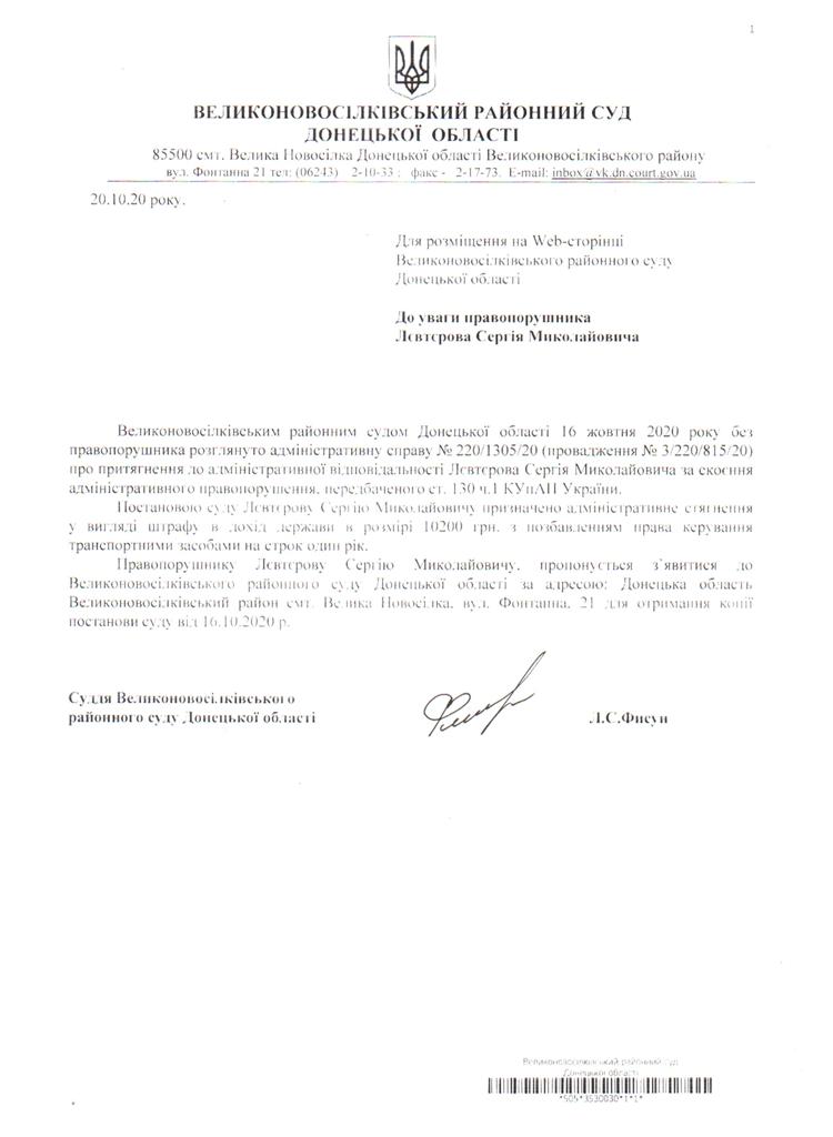 оголошення для Філіпова Лєвтєрова С.М. щодо отримання копії постанови