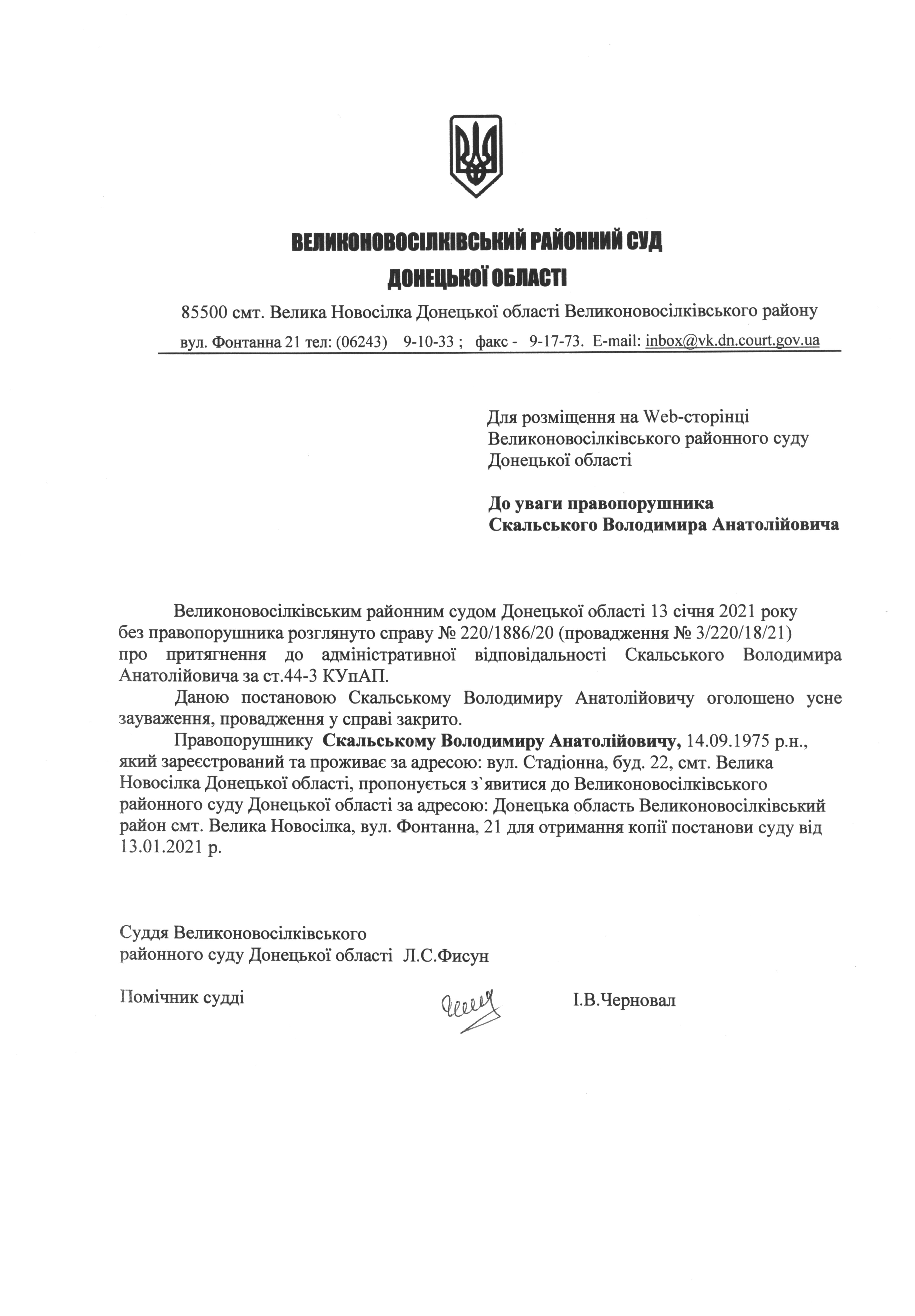 До уваги правопорушника Скальського Володимира Анатолійовича