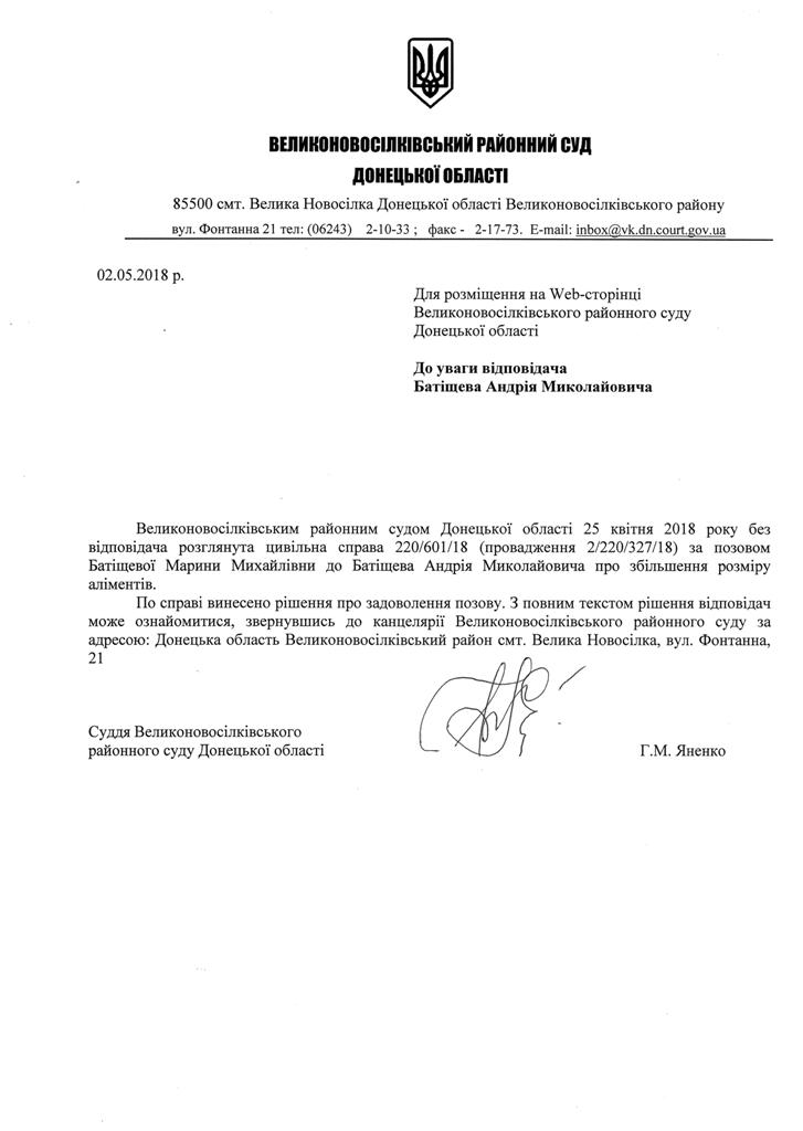 Оголошення про виклик до суду Батіщева А.М.