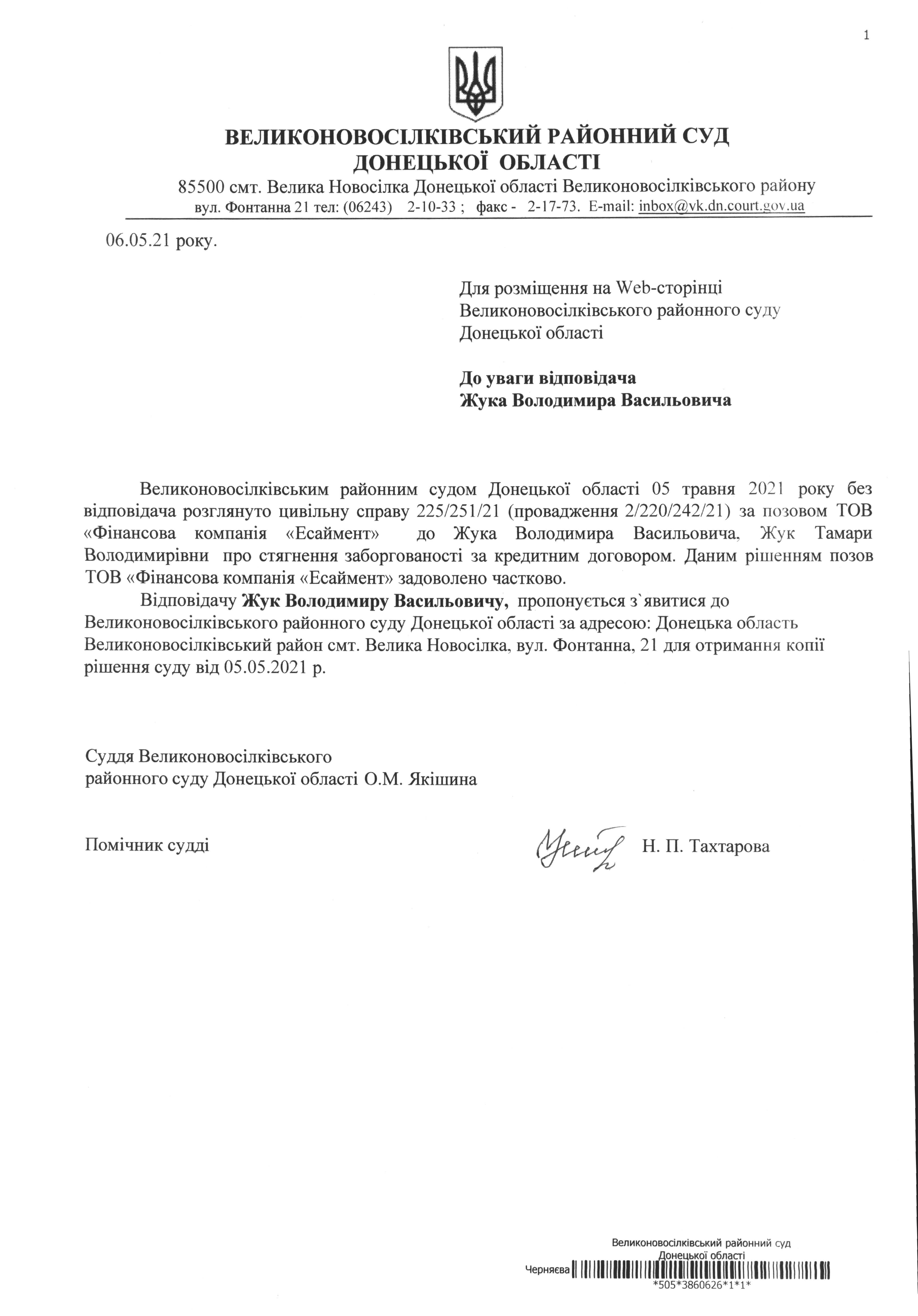 До уваги відповідача Жук Володимира Васильовича