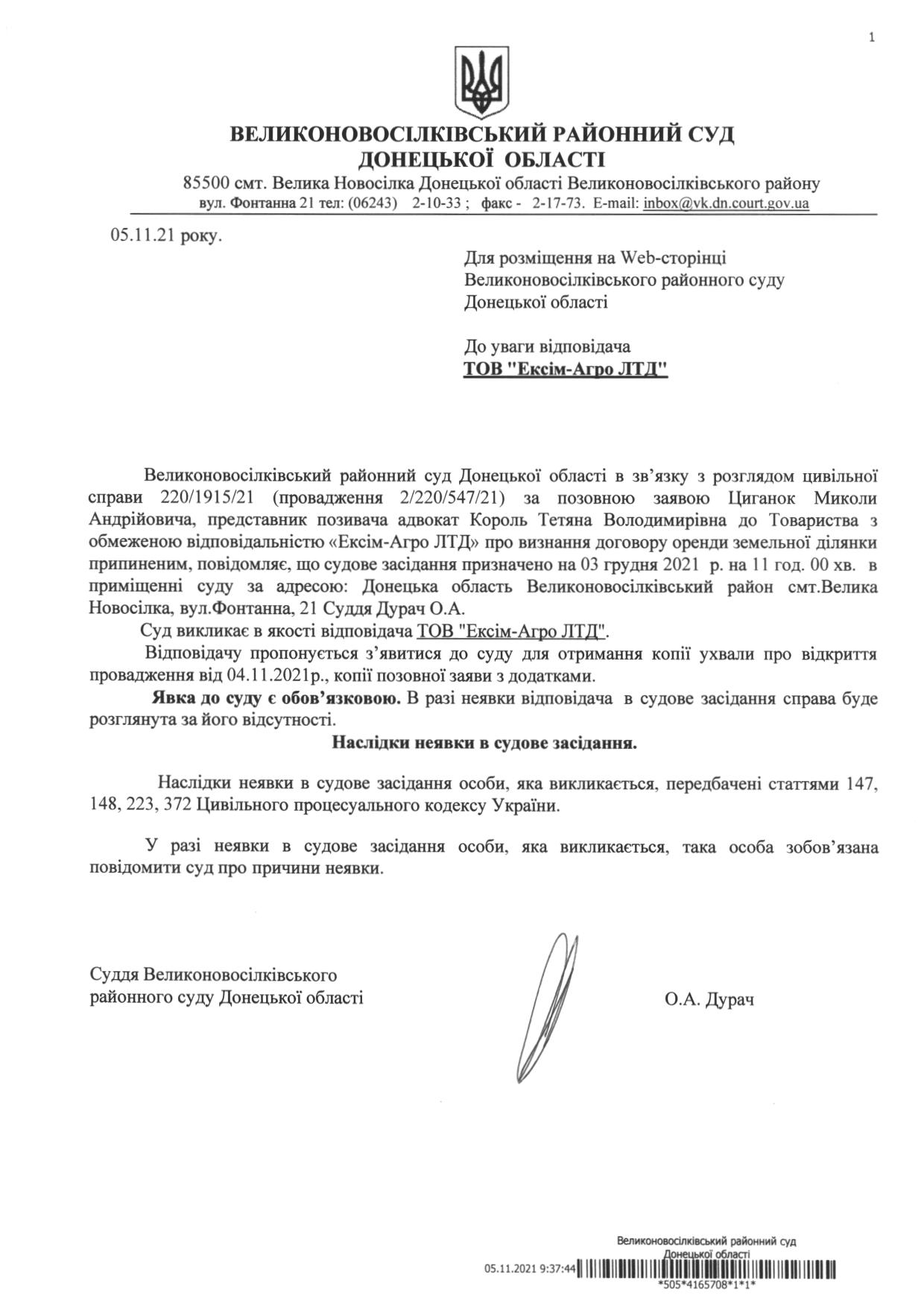 До уваги відповідача ТОВ "Ексім-Агро ЛТД"