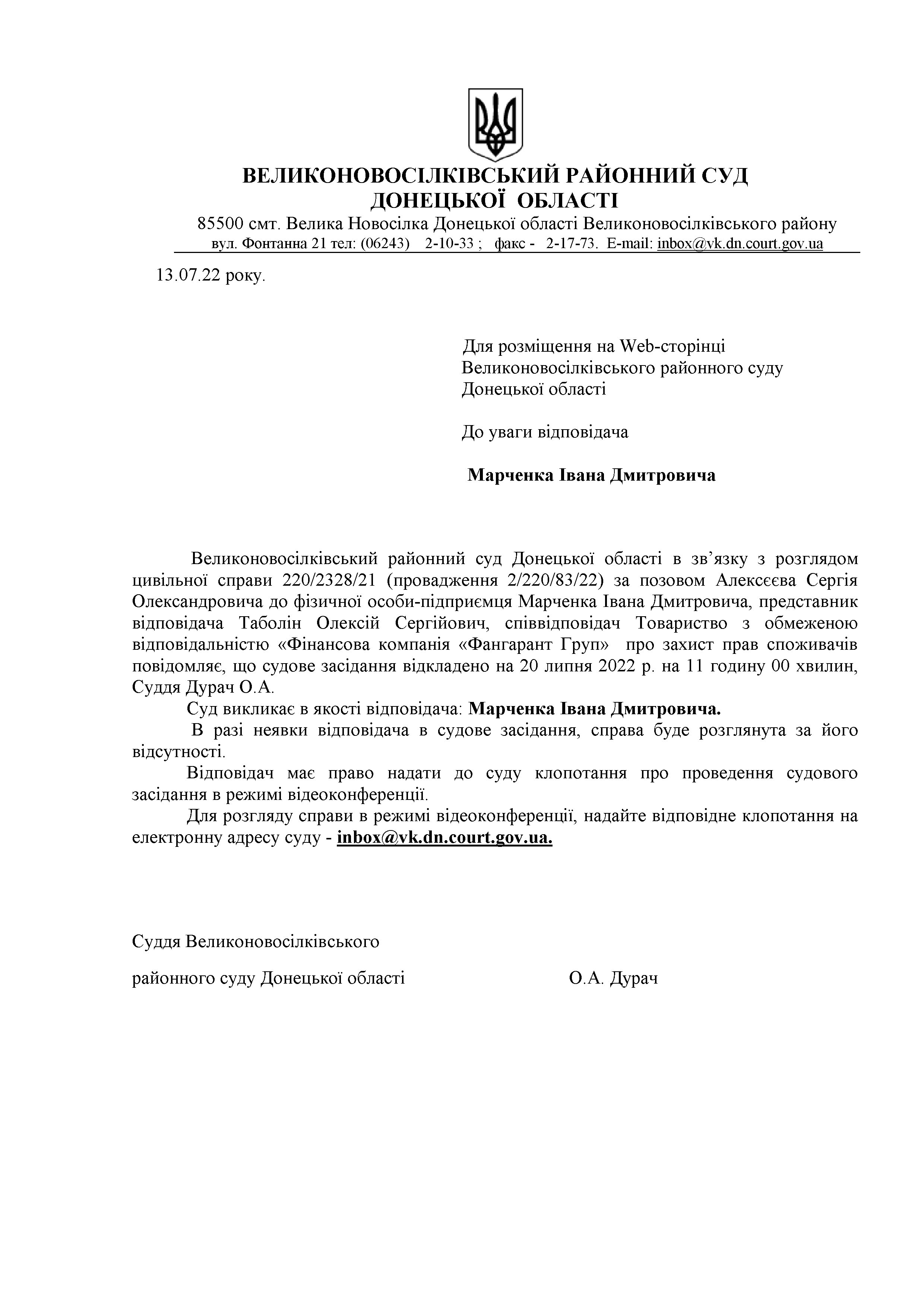 До уваги відповідача Марченка І.Д.