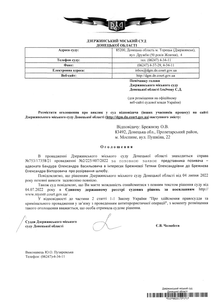 Повідомлення про винесення рішення по справі №753/17958/21