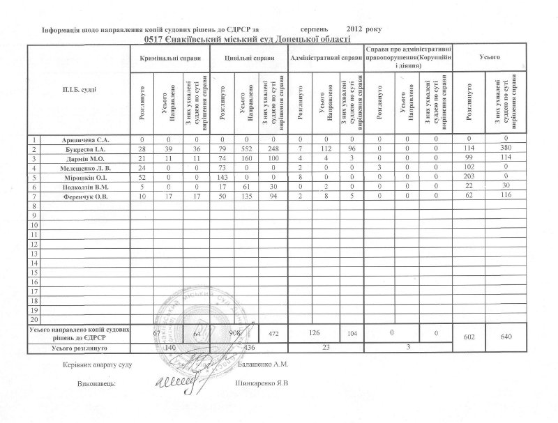Звіт ЄДРСР за серпень 2012 року