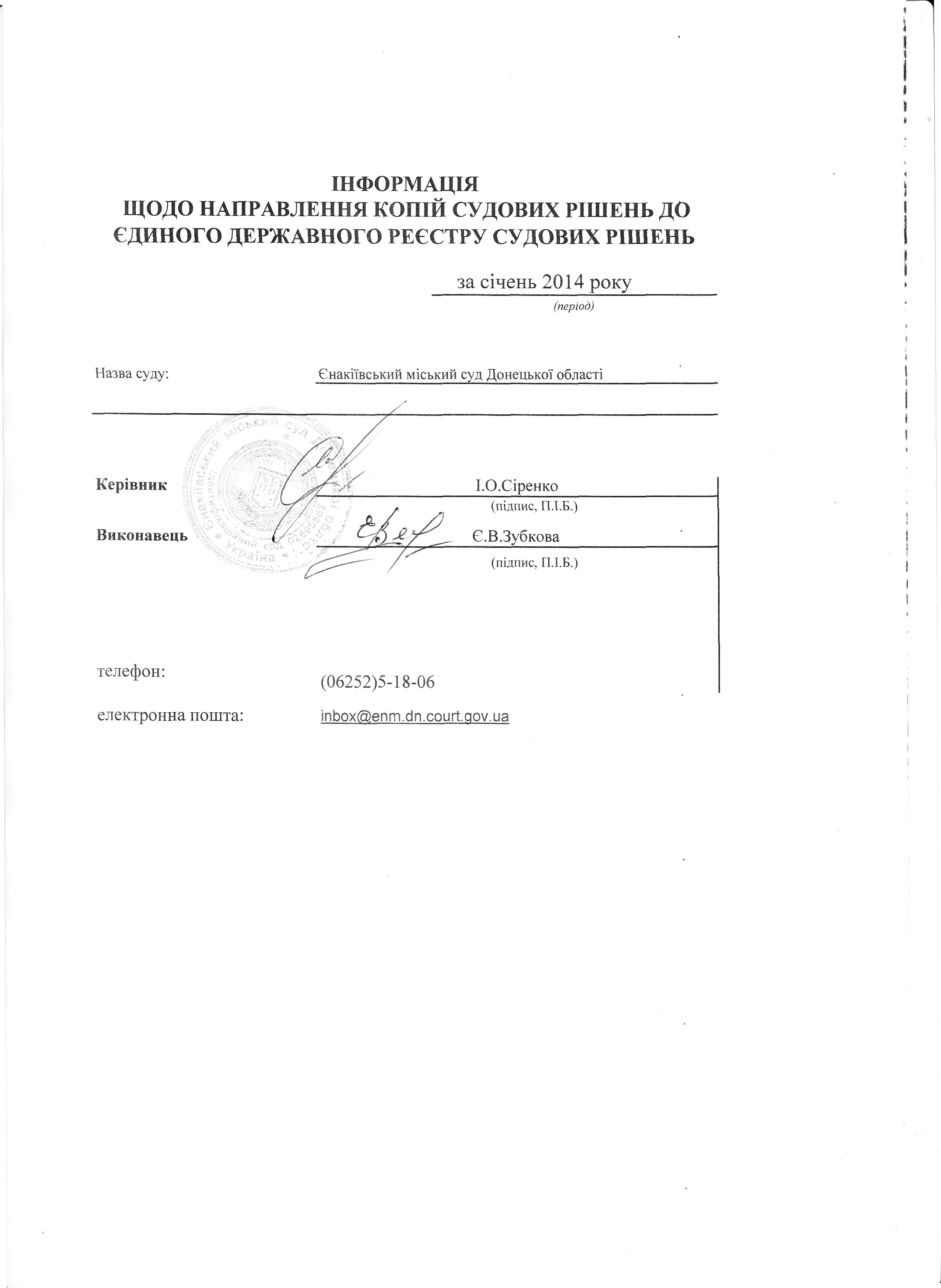 Звіт ЄДРСР за січень 2014 року