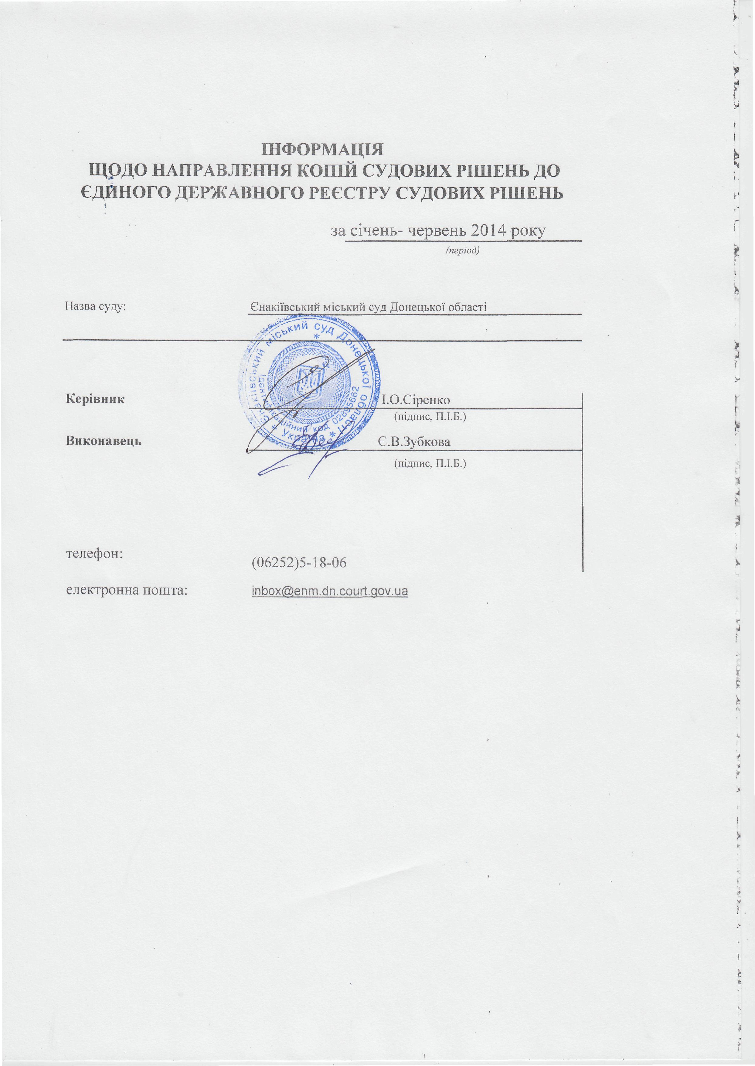 Звіт ЄДРСР за січень-червень 2014 року