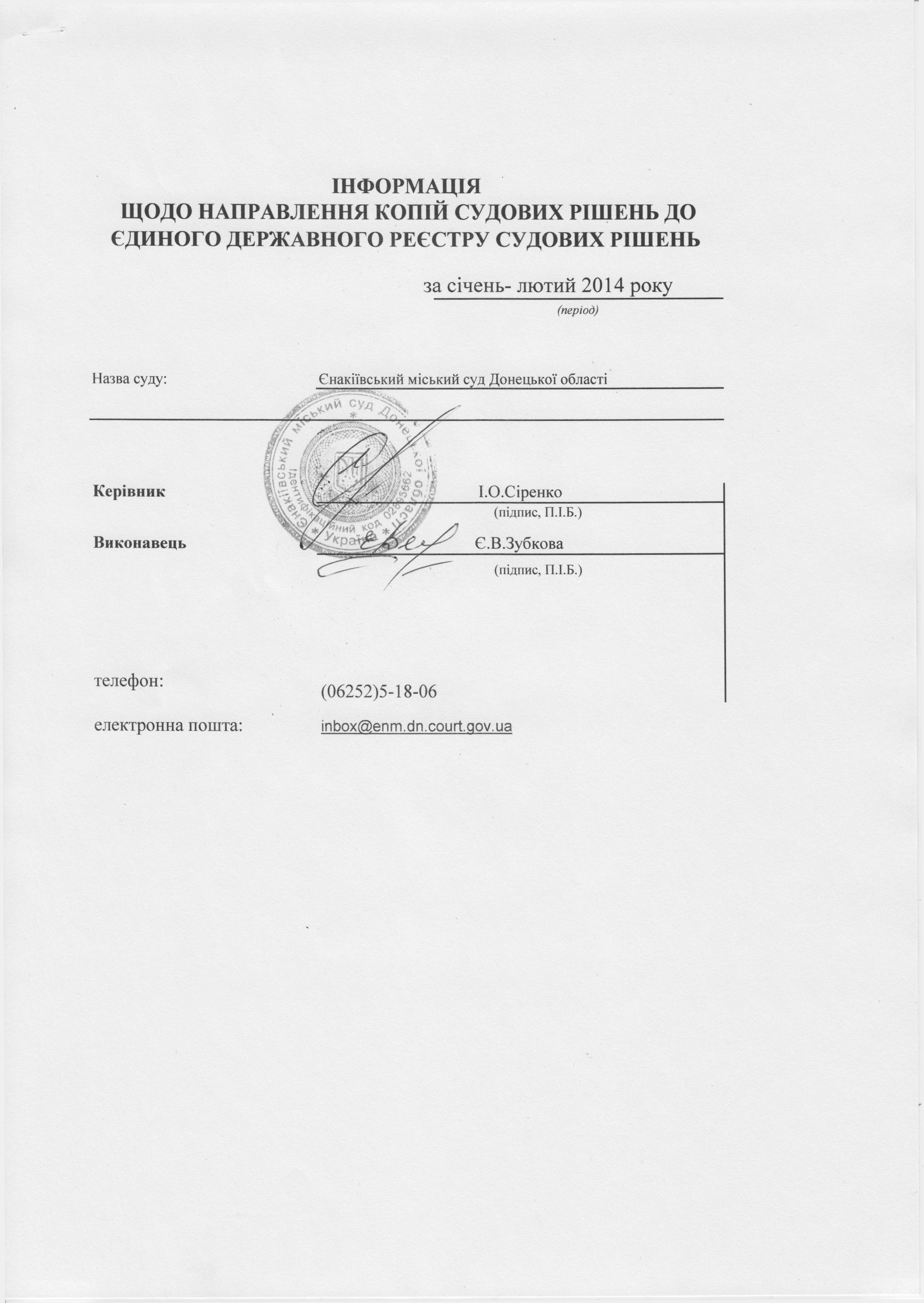 Звіт ЄДРСР за січень-лютий 2014 року