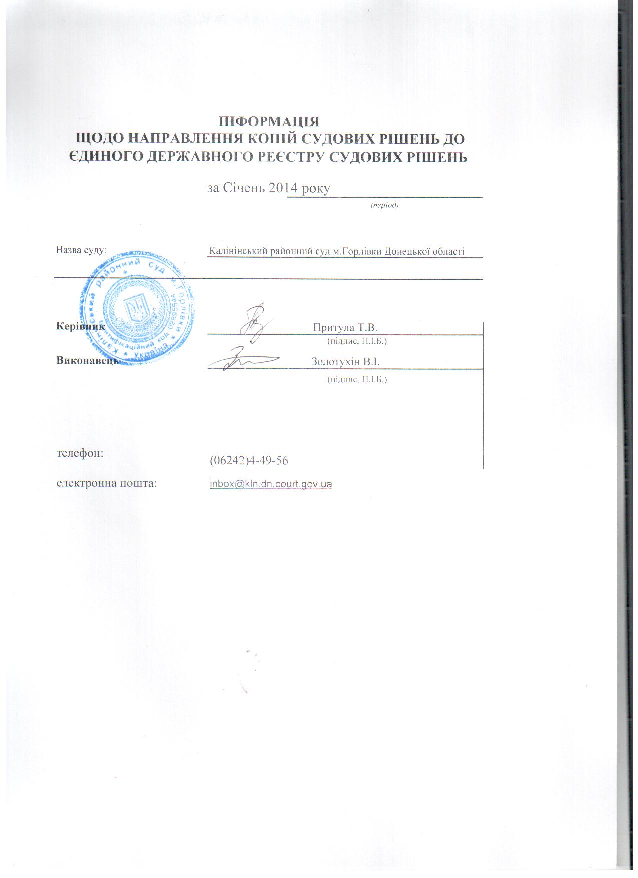 Звіт ЄДРСР Січень 2014