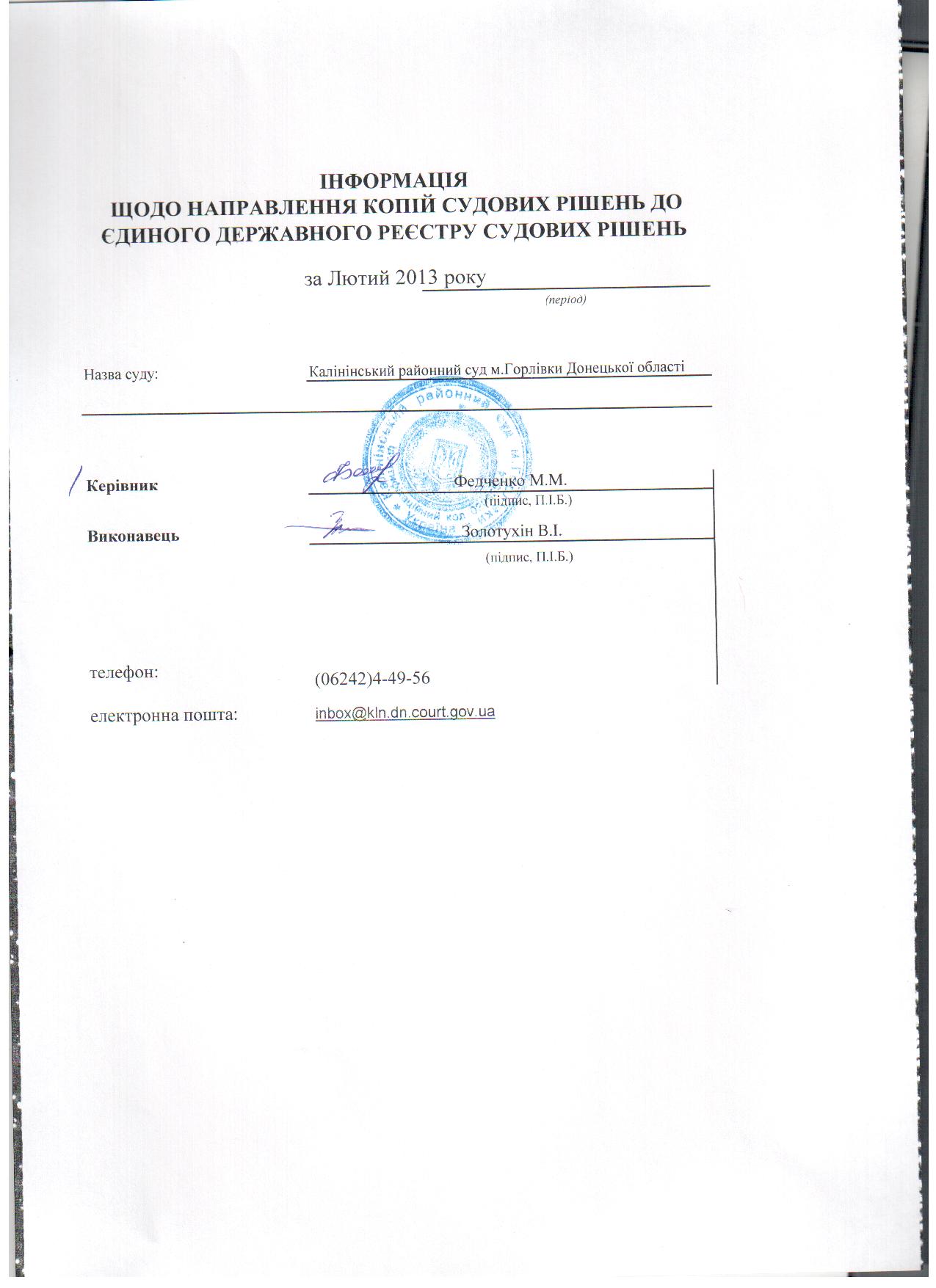 Інформація щодо направлення копій судових рішень за Січень-Лютий