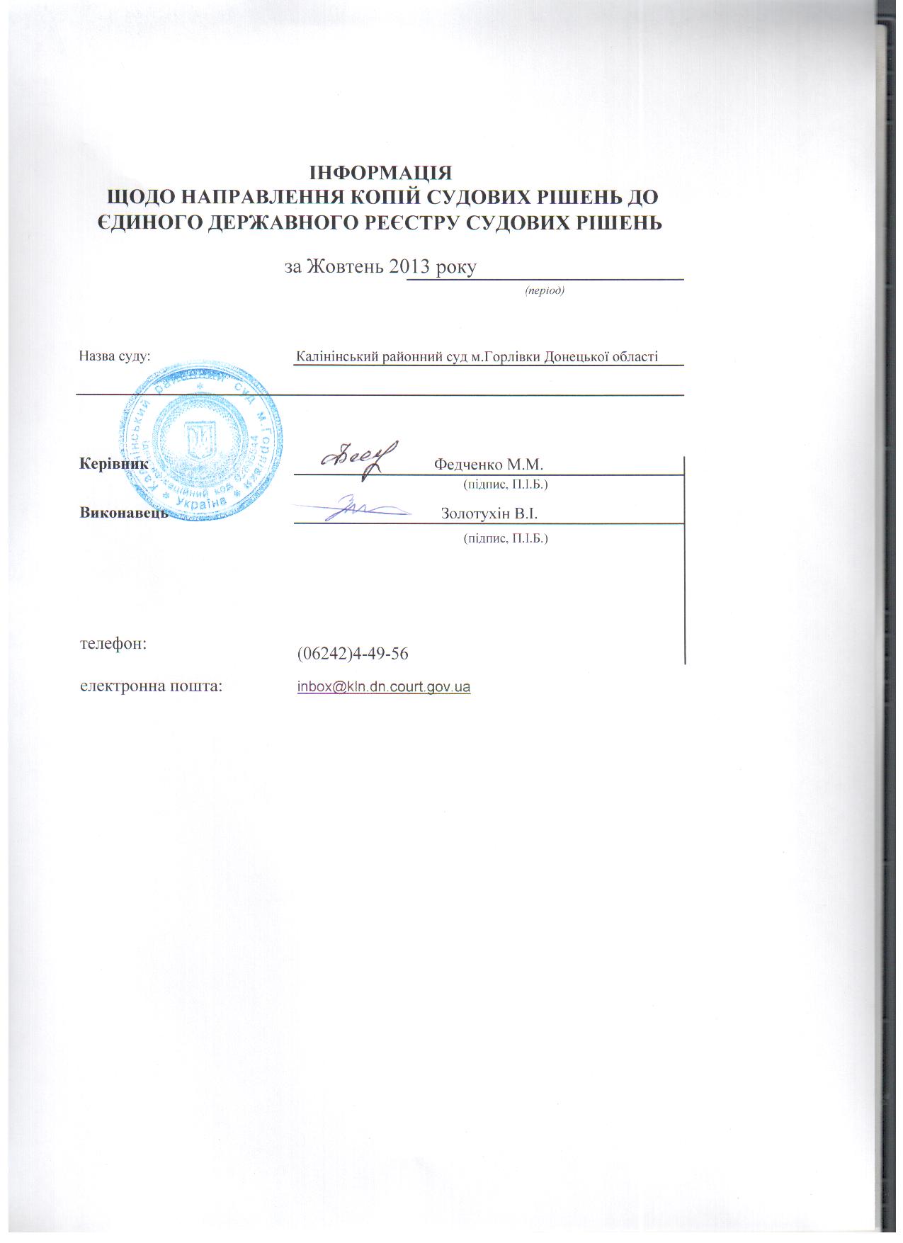 Інформація щодо направлення копій судових рішень за Січень-Жовтень