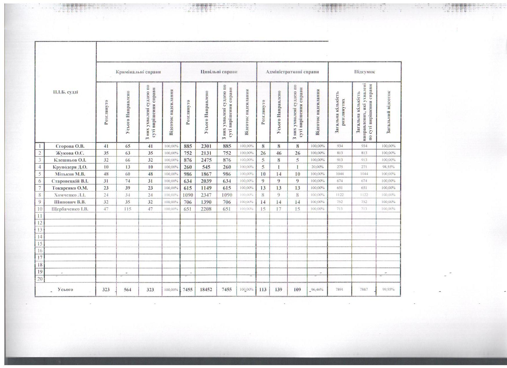 Інформація щодо направлення копій судових рішень за Січень-Листопад