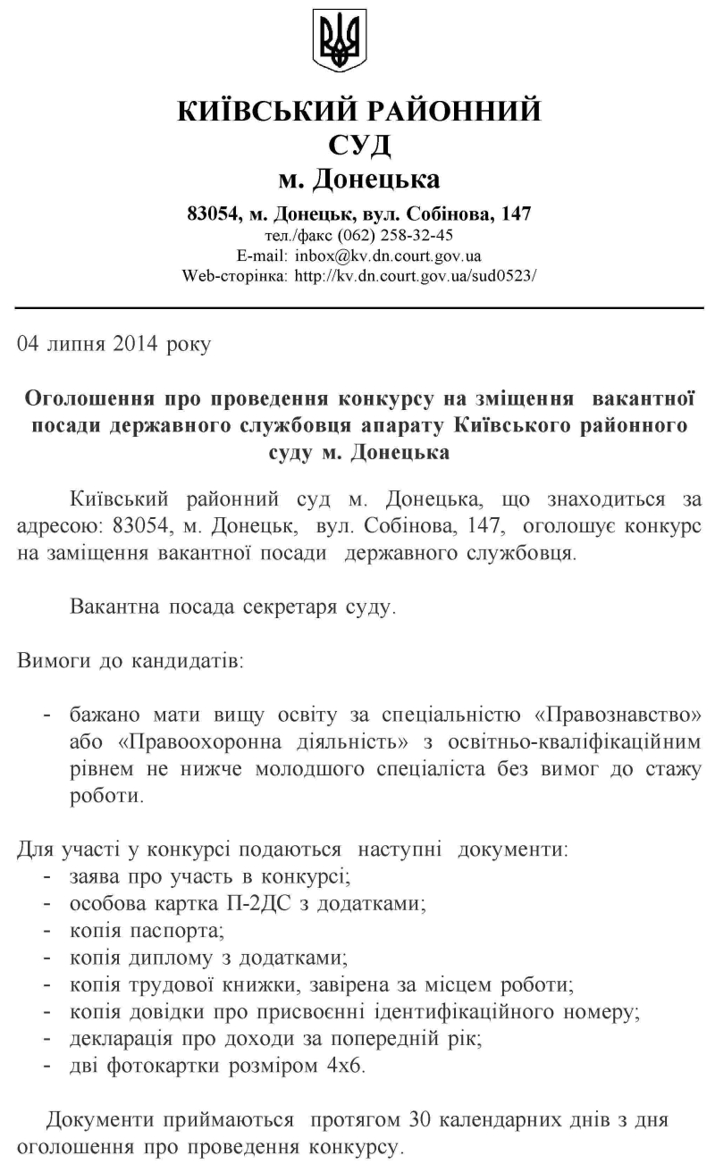 Інформація про вакансії в апараті суду