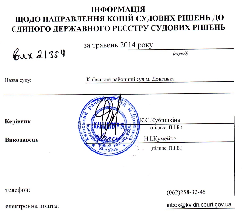 Інформація щодо направлення копій судових рішень до ЄДРСР за травень 2014 року