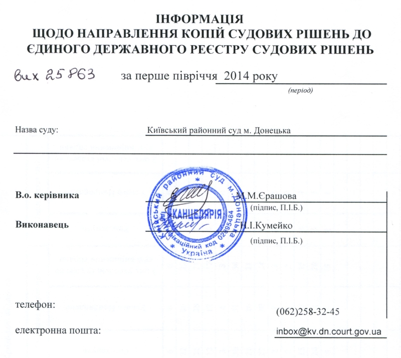Інформація щодо направлення копій судових рішень до ЄДРСР за червень 2014 року