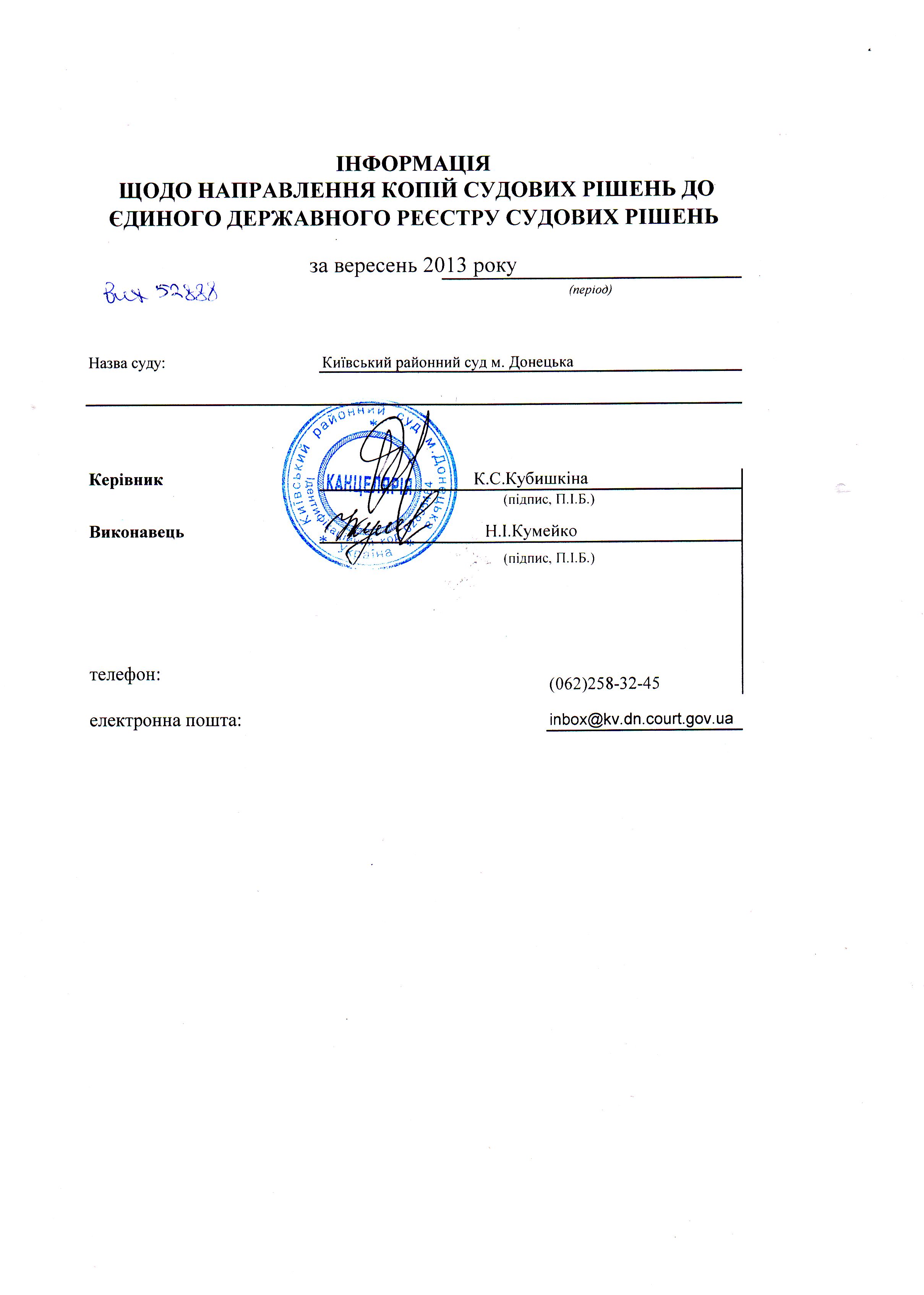 Інформація щодо направлення копій судових рішень до ЄДРСР за вересень 2013 року