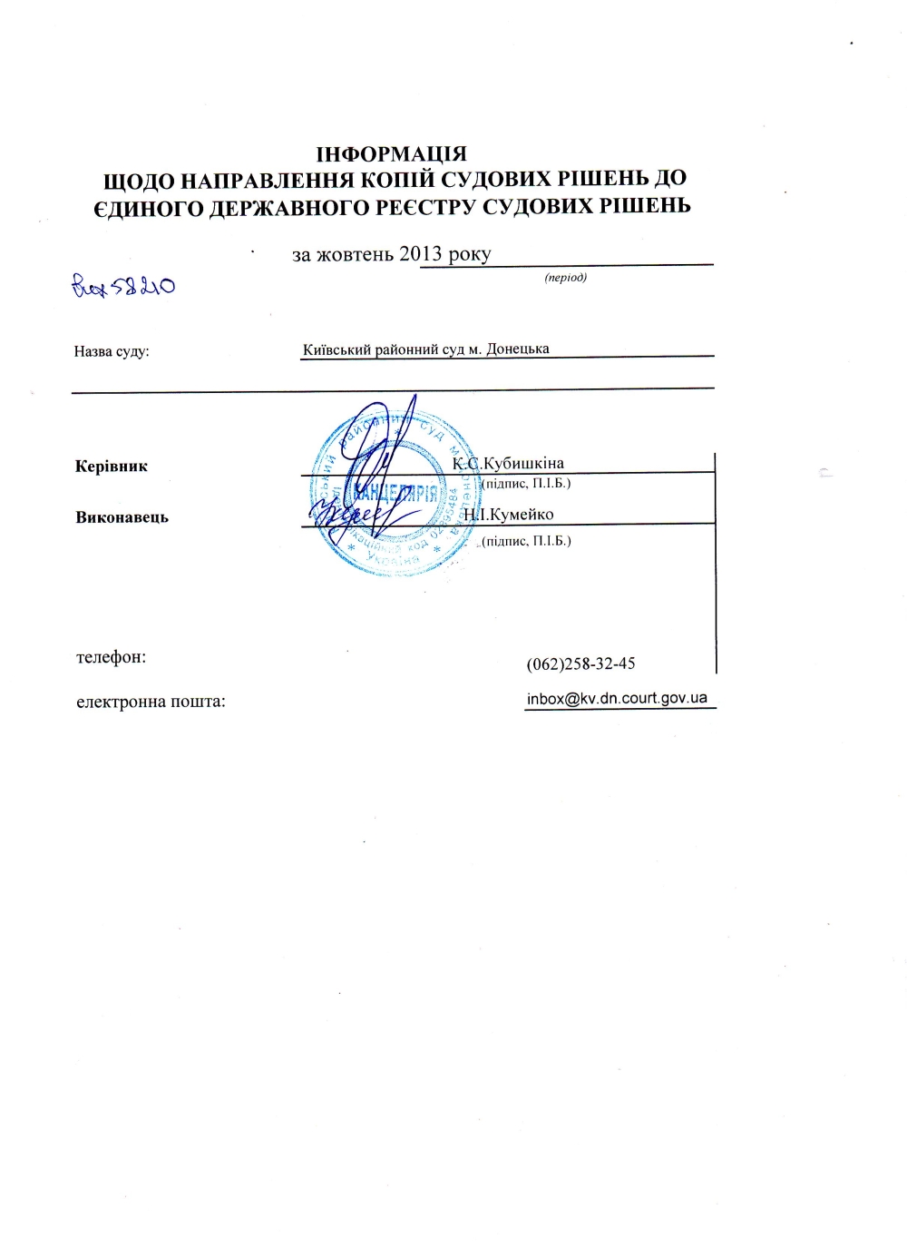 Інформація щодо направлення копій судових рішень до ЄДРСР за жовтень 2013 року