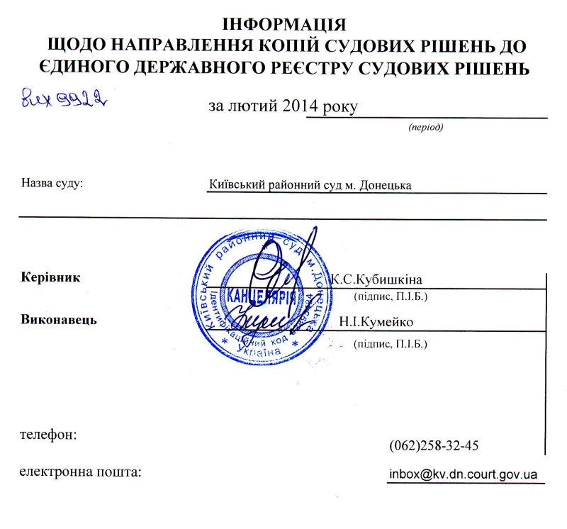 Інформація щодо направлення копій судових рішень до ЄДРСР за лютий 2014 року