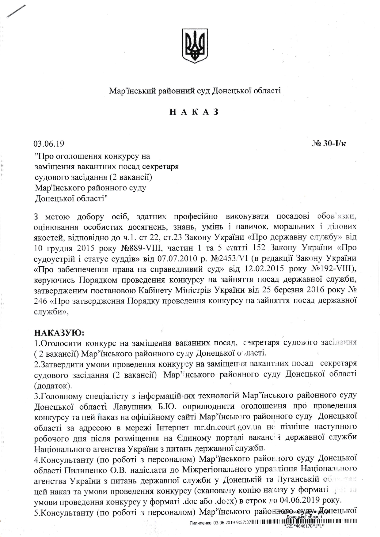 Наказ про оголошення конкурсу