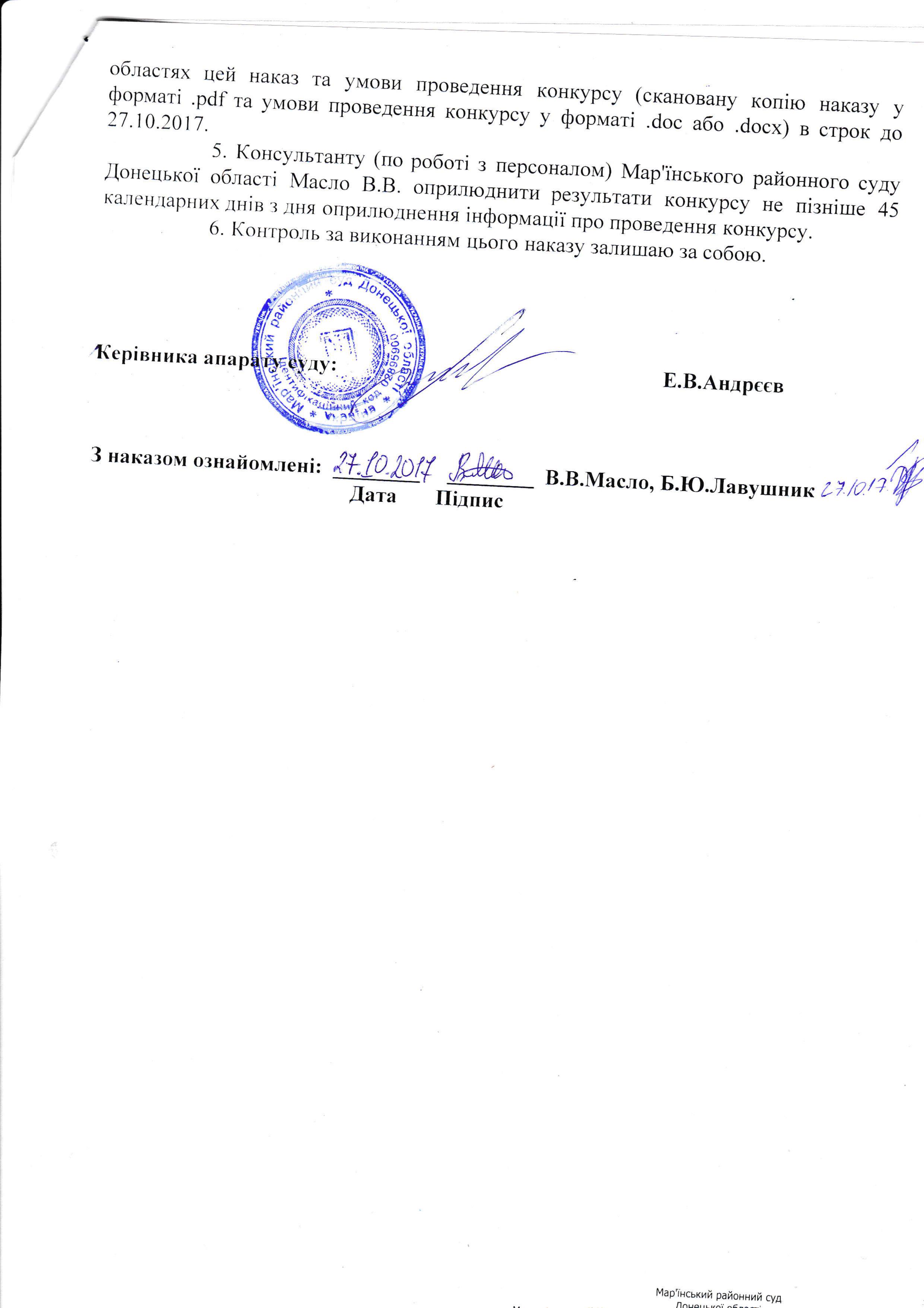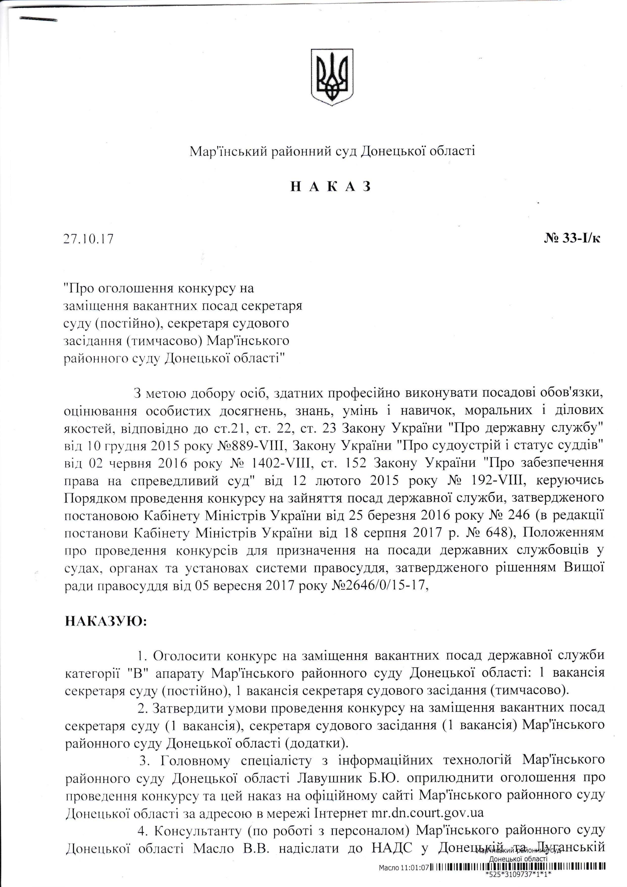 Наказ про оголошення конкурсу