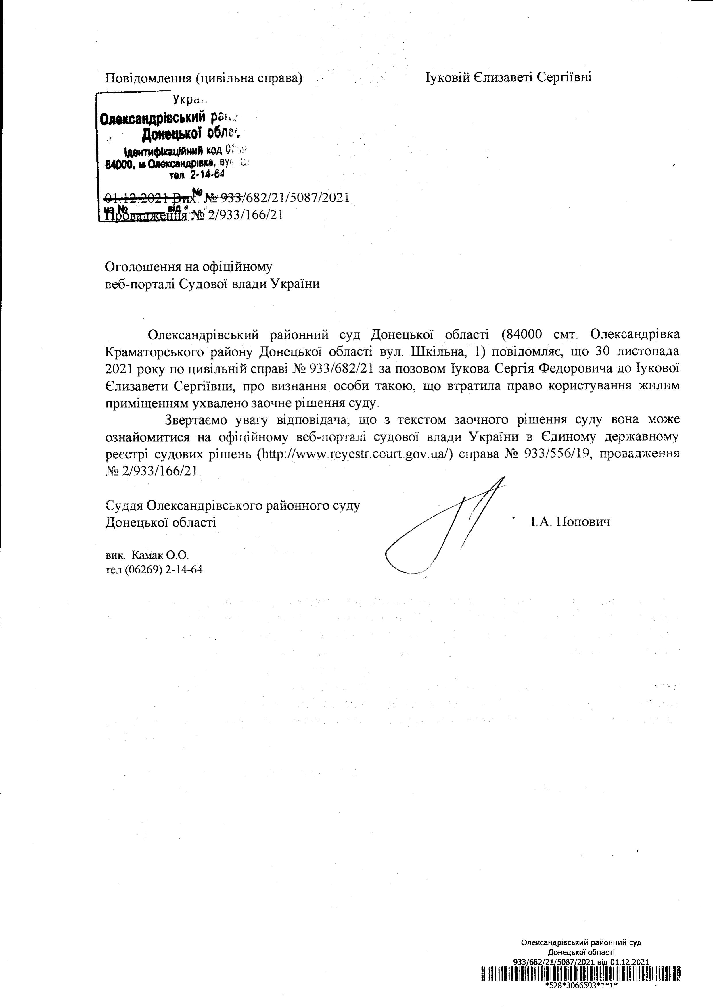 Оголошення Іуковій Є.С.