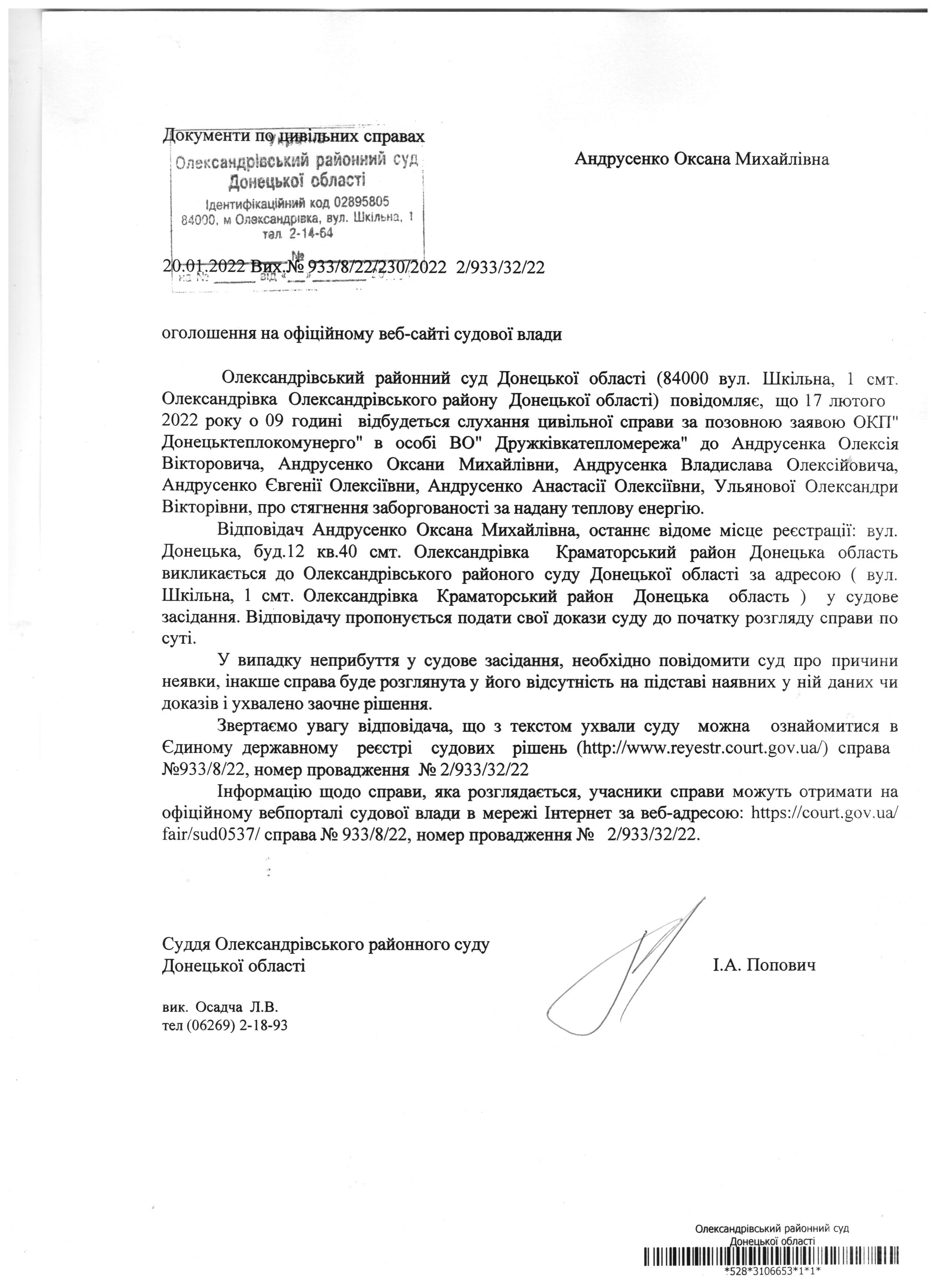 Оголошення для Андрусенко О.М.