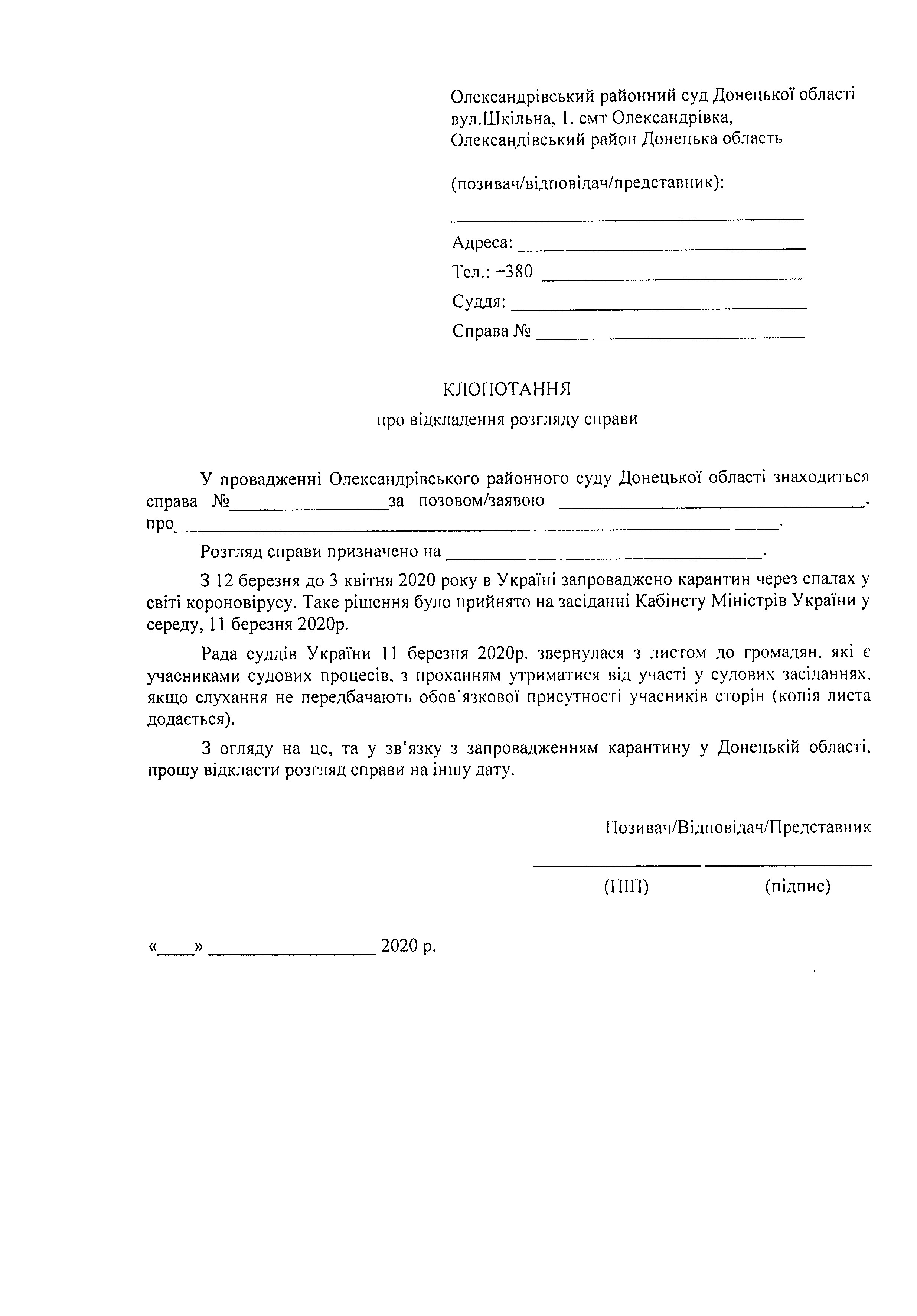 Клопотання про відкладення розгляду справи