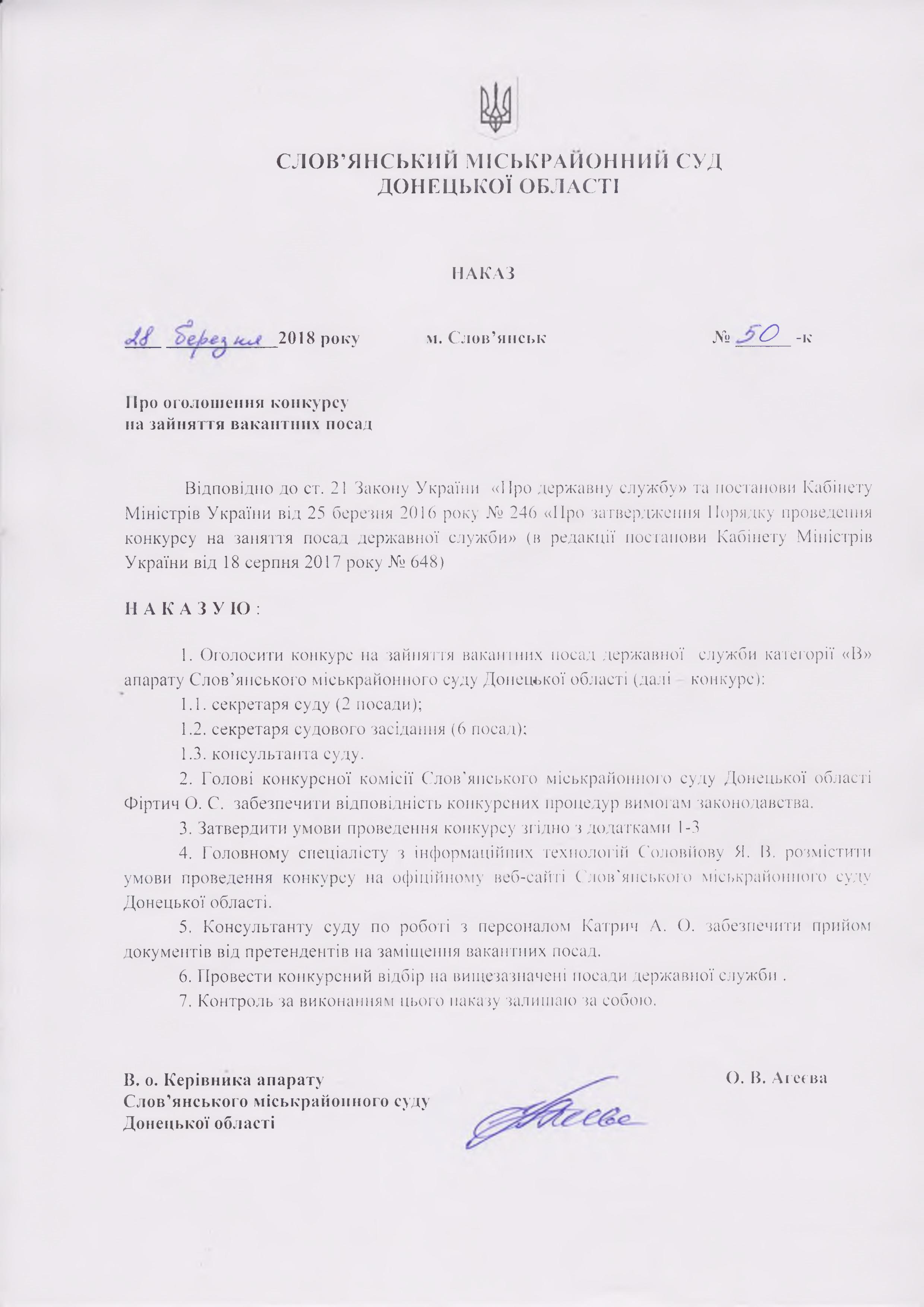 консультант суду по роботі з персоналом Катрич Альона Олександрівна, (0626) 3-50-85, +380951977969, inbox@sl.dn.court.gov.ua |