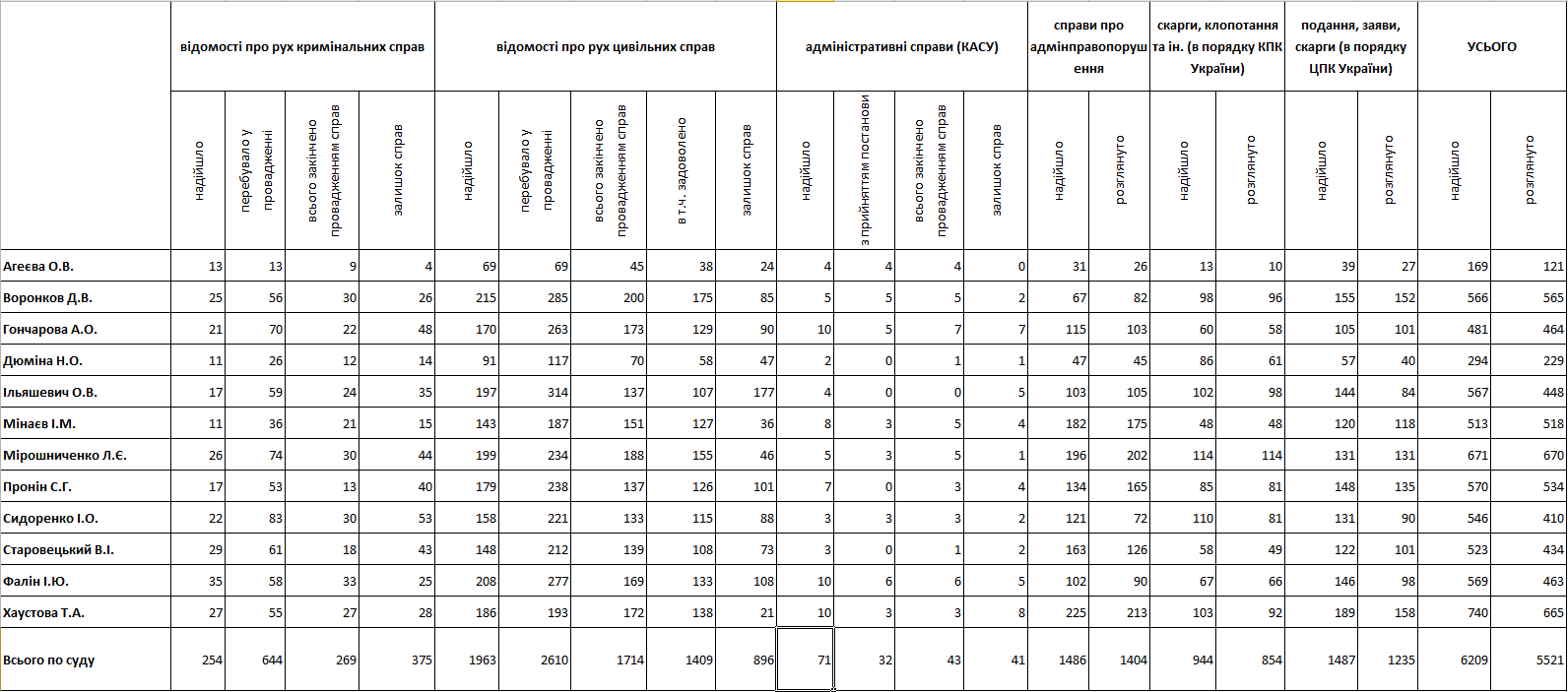Відомості про роботу суддів за січень-травень 2021 року