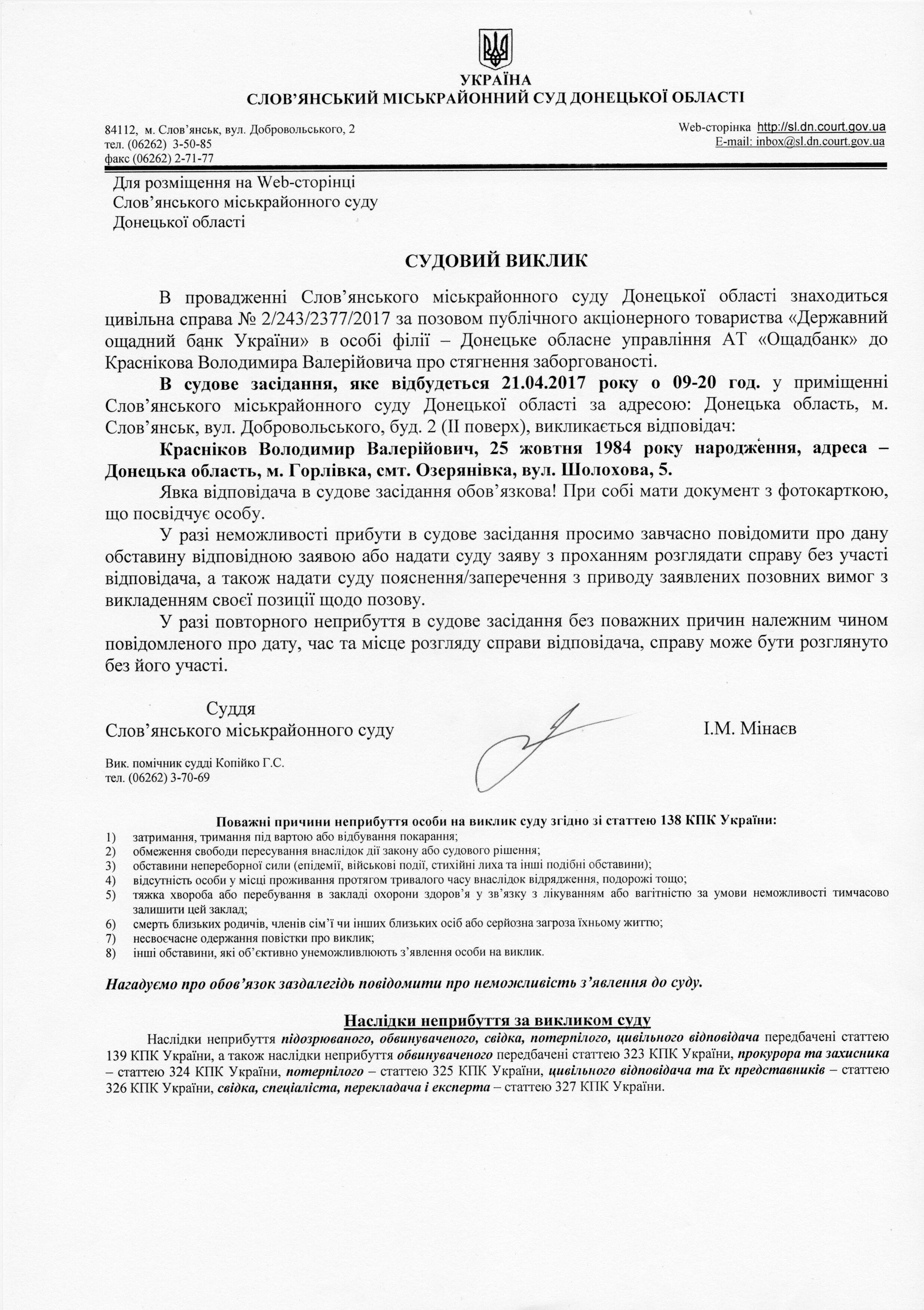 Оголошення по цивільній справі №2/243/2377/2017 за позовом ПАТ "Державний ощадний банк України"