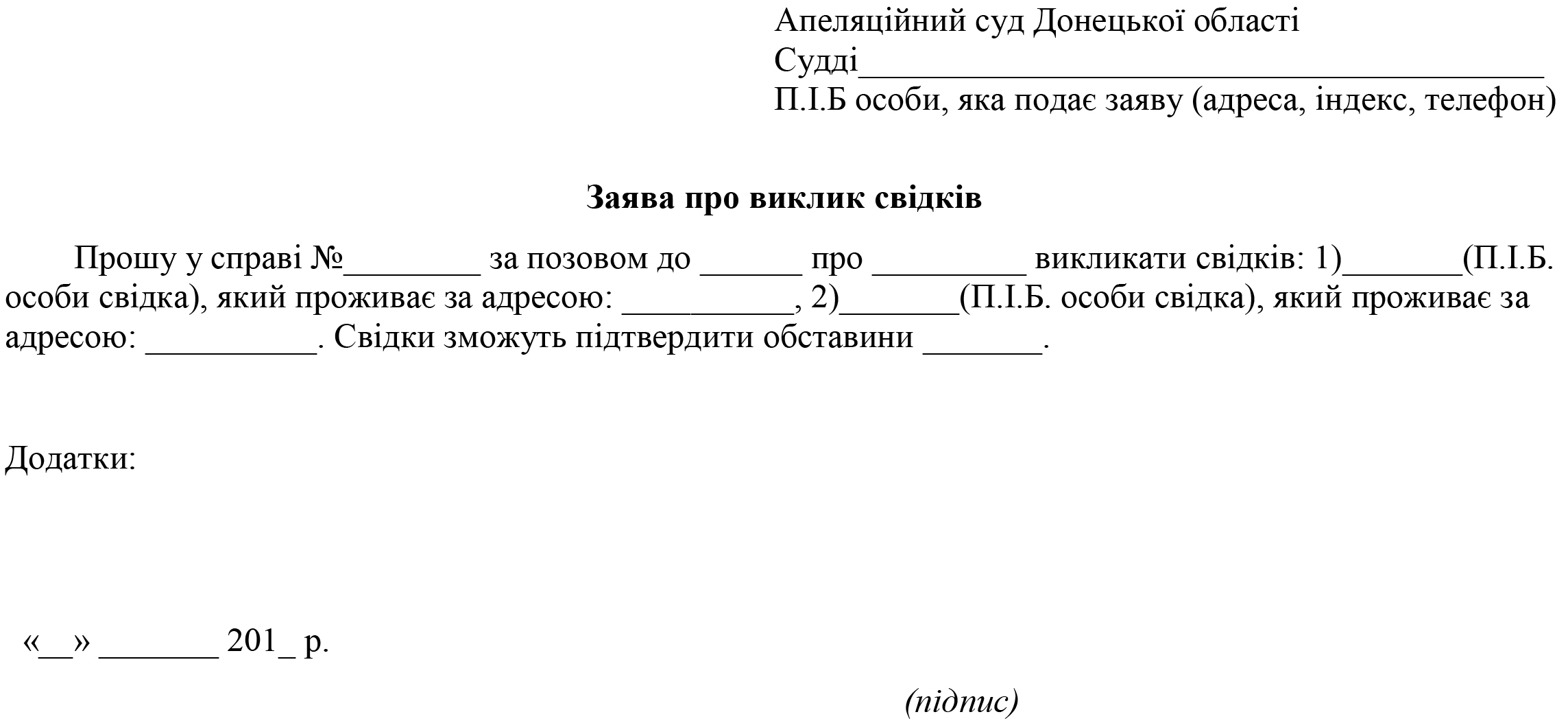 заява про виклик свідків