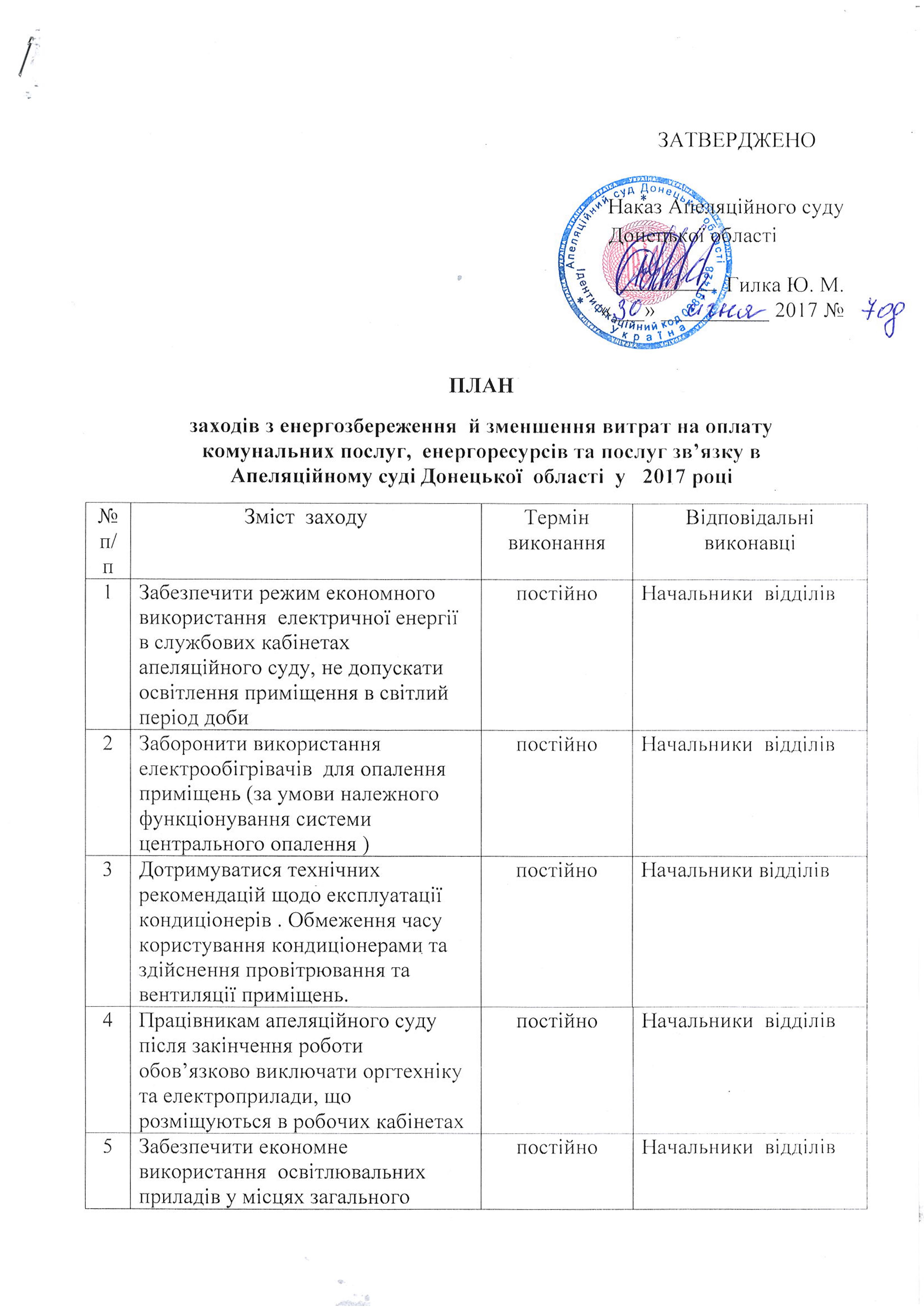 План заходів з енергозбереження і скорочення витрат на комунальні послуги та енергоносії