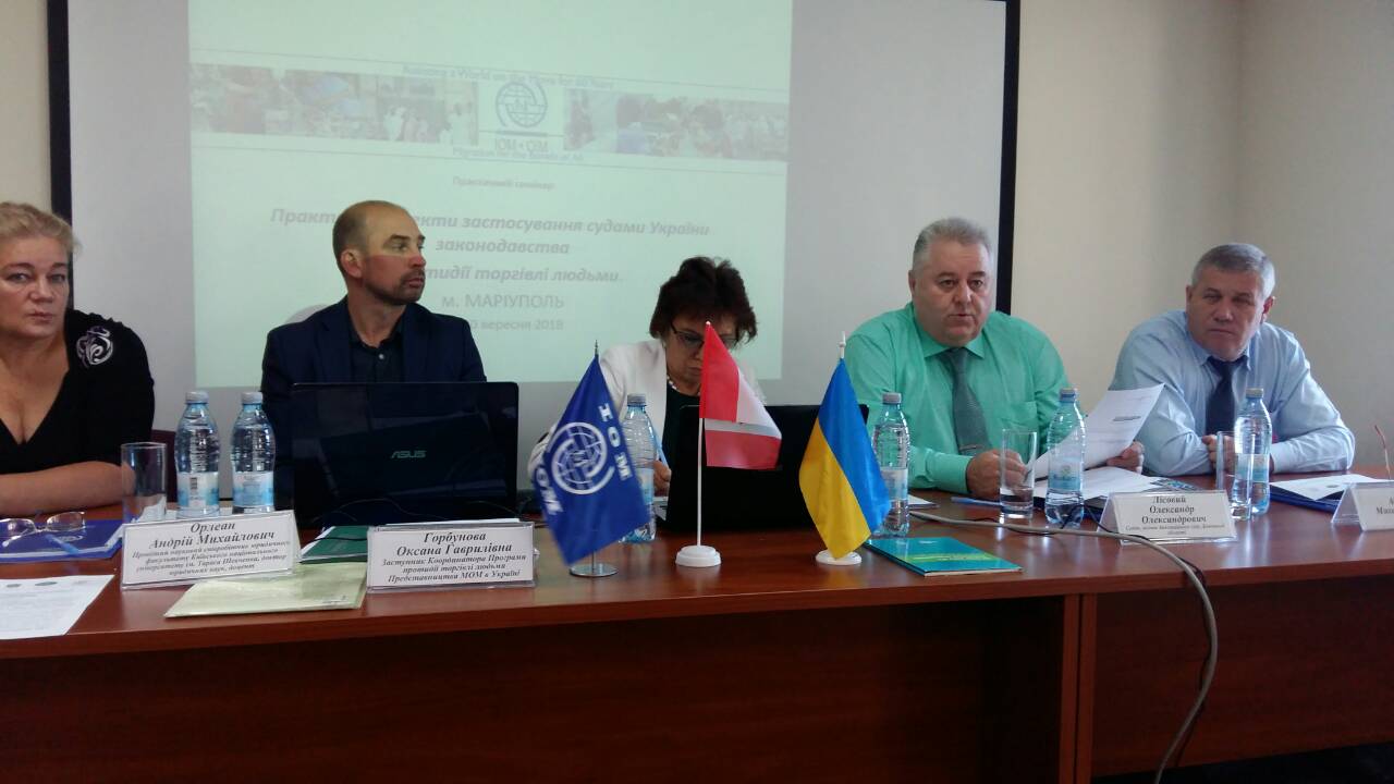 19-20 вересня 2018 року у місті Маріуполі Дніпропетровським регіональним відділенням Національної школи суддів України спільно з представництвом Міжнародної організації з міграції (МОМ) в Україні за підтримки Міністерства міжнародних справ Канади проведено семінар на тему: «Практичні аспекти застосування судами України законодавства з протидії торгівлі людьми, особливо малолітніми та дітьми».