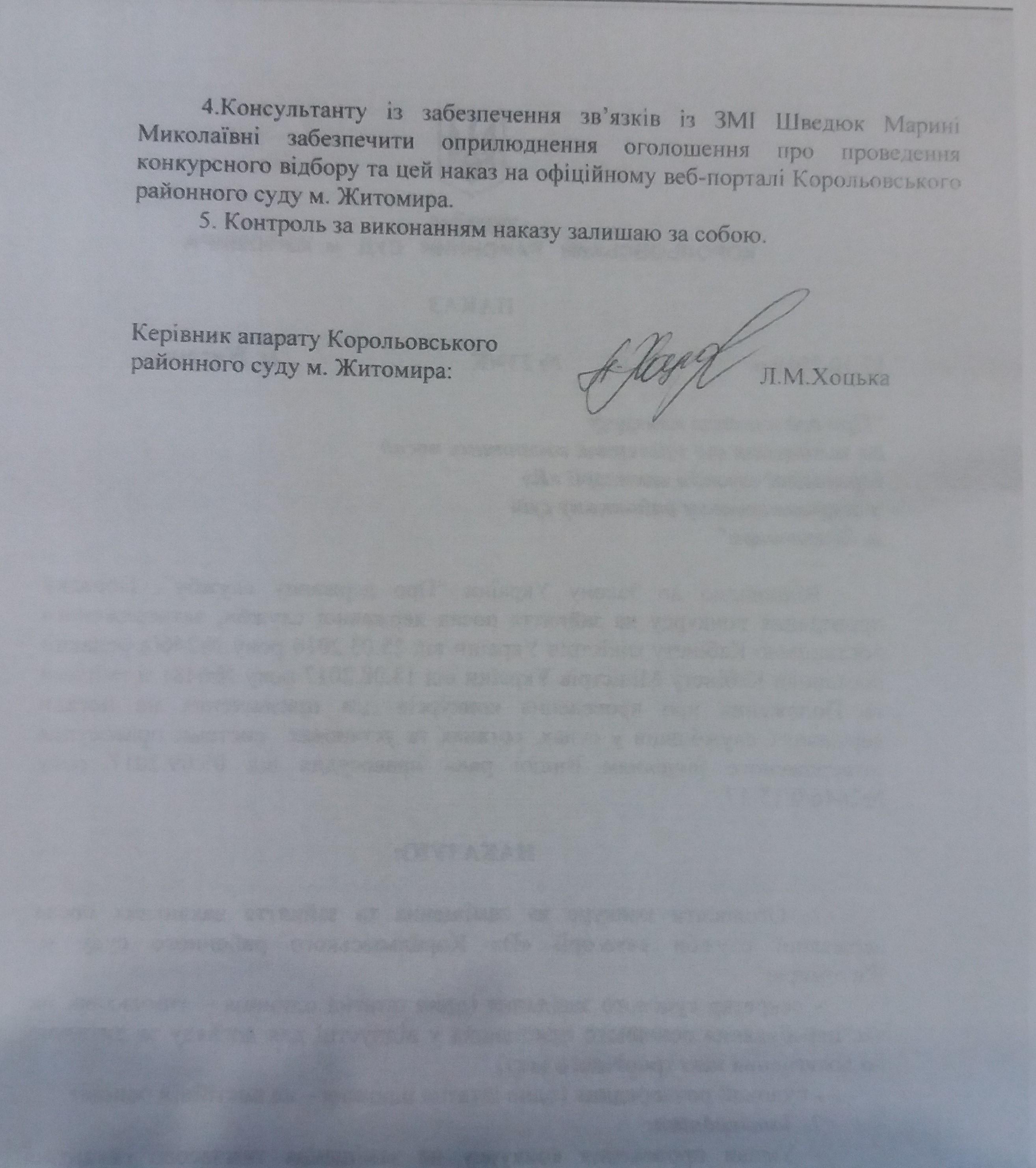 проведення конкурсу на заміщення вакантної посади державної служби категорії “В”- судовий розпорядник Корольовського районного суду м. Житомира