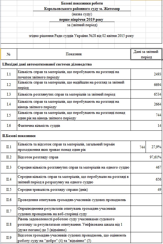 Базові показники роботи за 1 півріччя 2019 року