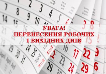 На підставі розпоряджень Кабінету Міністрів України від 10 січня 2019 року № 7-р «Про перенесення робочих днів у 2019 році» та від 23 жовтня 2019 року № 995-р «Про перенесення робочих днів у 2020 році», з метою забезпечення раціонального використання робочого часу, Корольовський районний суд м. Житомира повідомляє про перенесення робочих днів у 2019 - 2020 рр.: